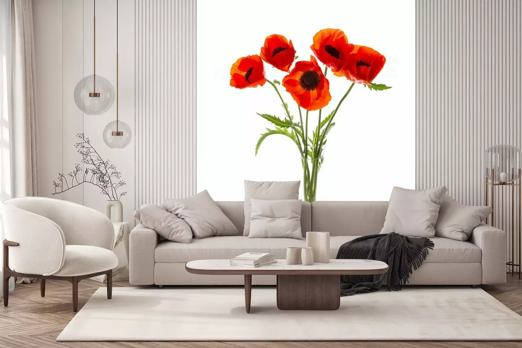 Das Material Standard ist ein hochwertiges Latexmaterial mit einer glatten, matten Oberfläche. Durch den Einsatz von HP-Latex-Drucktechnologie sind die Farben satt, langlebig und UV-beständig. So bleibt das Muster über Jahre hinweg makellos schön. Die verschmutzte Oberfläche dieses Materials kann sanft mit einem trockenen Tuch abgewischt werden. Die maximale Breite einer einzelnen Bahn beträgt 95 cm oder 105 cm – je nach Breite der bestellten Fototapete. Bei Fototapeten mit größeren Abmessungen besteht der Ausdruck aus mehreren gleich großen Tapetenbahnen. Die Fototapete wird auf Stoß angebracht, wodurch die Fugen nahezu unsichtbar sind.