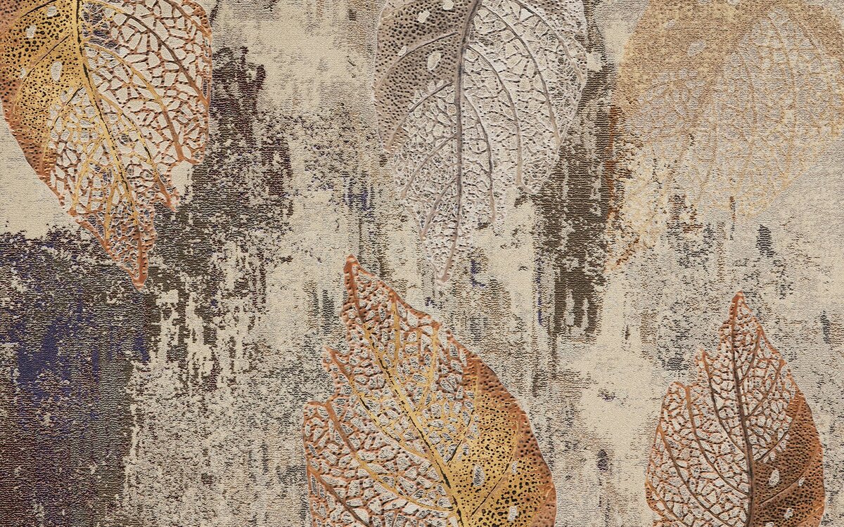 Fototapete: Ein Wandbild mit Blättern auf Betongrund