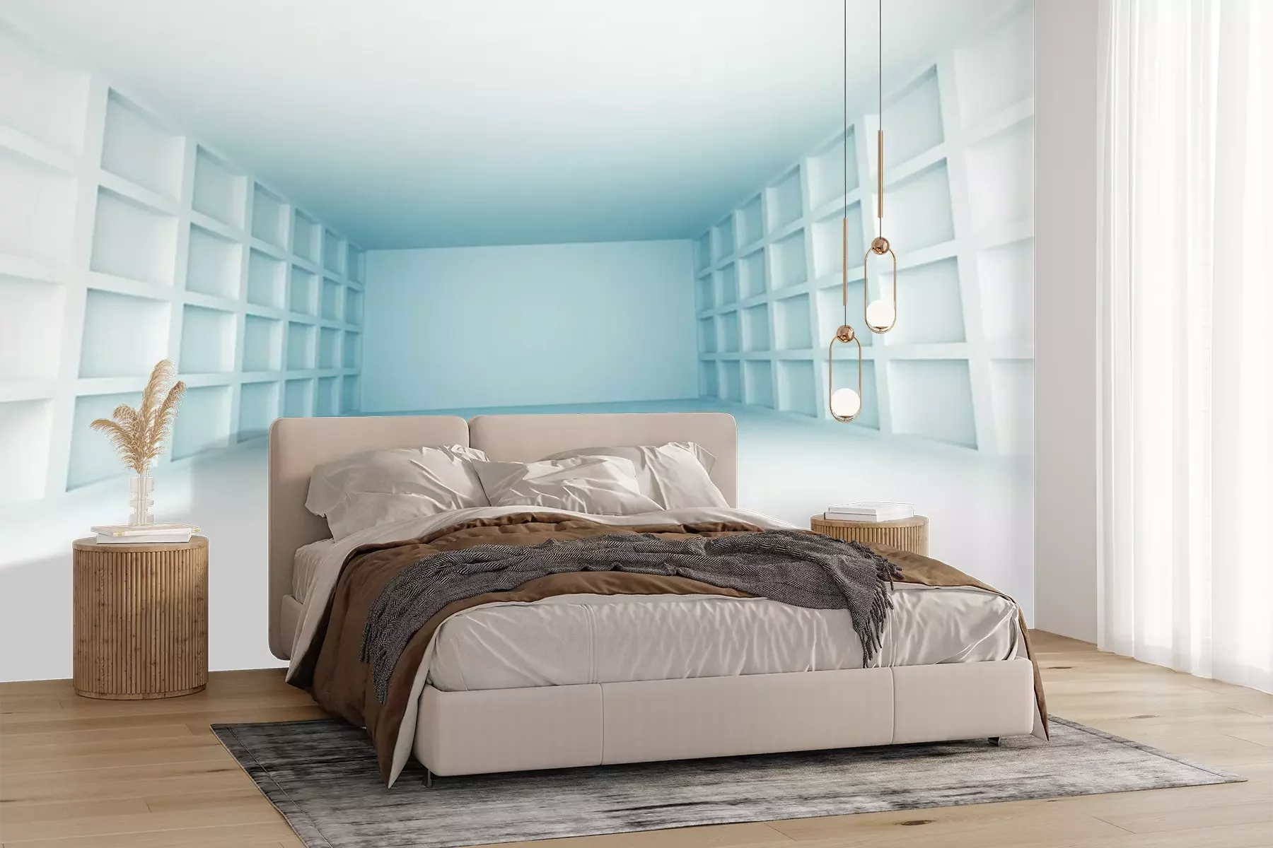Die Fototapeten werden in Bahnen geliefert. Die Größe und die Anzahl der Bahnen, aus denen die gesamte Fototapete besteht, hängen vom gewählten Material ab. Wenn die Größe die maximale Breite des Materials überschreitet, besteht der Ausdruck aus mehreren gleich großen Bahnen.
