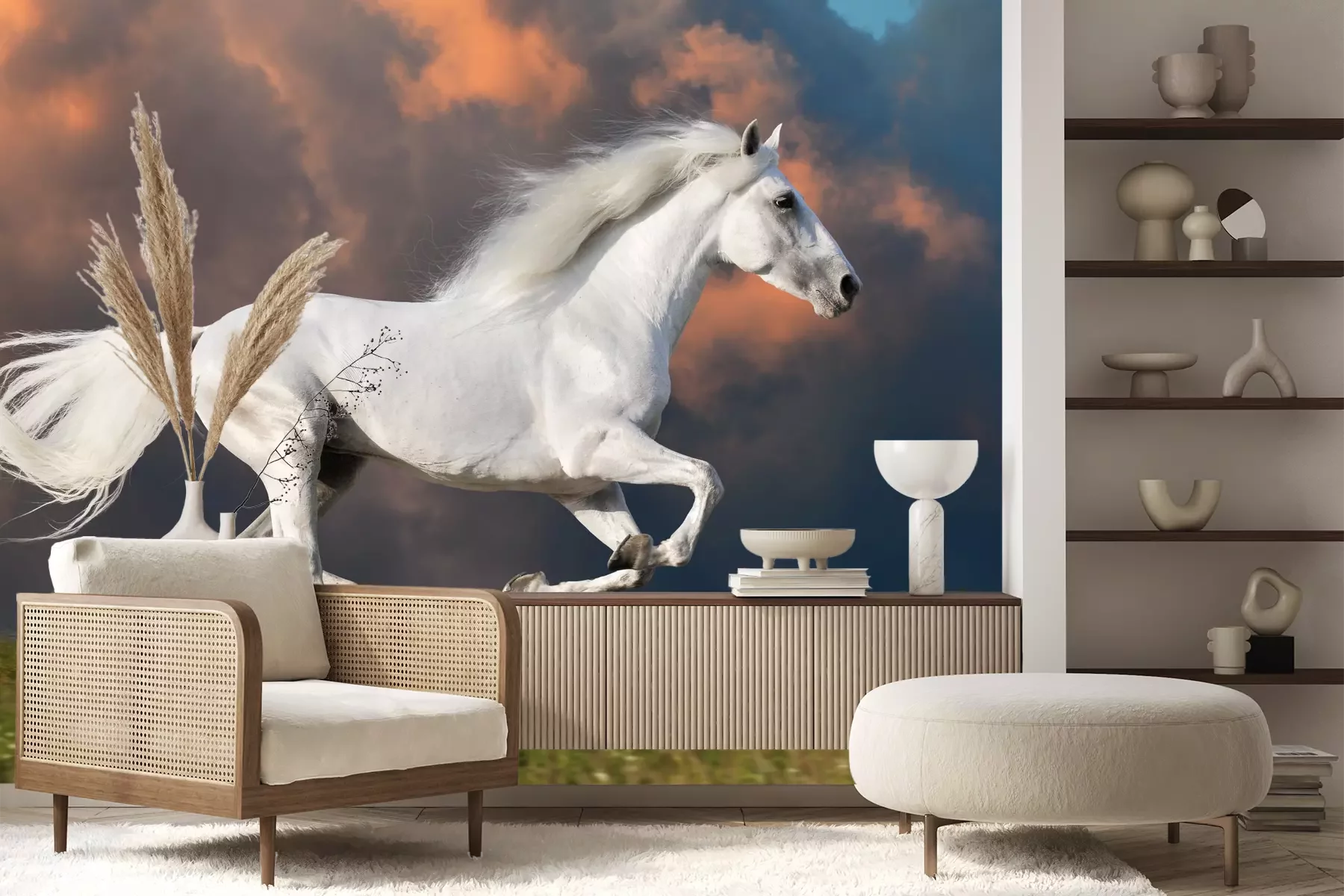 Das Material Premium+ besteht aus einer strukturierten Vinyl-Oberschicht und einem Trägermaterial (Vlies) mit einer Grammatur von 255 g/m², das kleine Unebenheiten der Wand zuverlässig kaschiert. Die feine Sandstruktur verleiht der Oberfläche eine luxuriöse Haptik, während das halbmatte Finish die Tiefe der Farben betont. Das Material ist dampfdurchlässig – so kann diese Fototapete auch in Küchen und Badezimmern eingesetzt werden. Die maximale Breite einer Tapetenbahn beträgt 100 cm. Bei größeren Abmessungen besteht die Fototapete aus mehreren gleich großen Bahnen. Der Kleber wird direkt auf die Wand aufgetragen, und die Fototapete wird auf Stoß angebracht, was für einen ästhetischen Effekt ohne sichtbare Fugen sorgt. Die Oberfläche ist pflegeleicht und kann bei Bedarf sanft mit einem feuchten Tuch abgewischt werden.