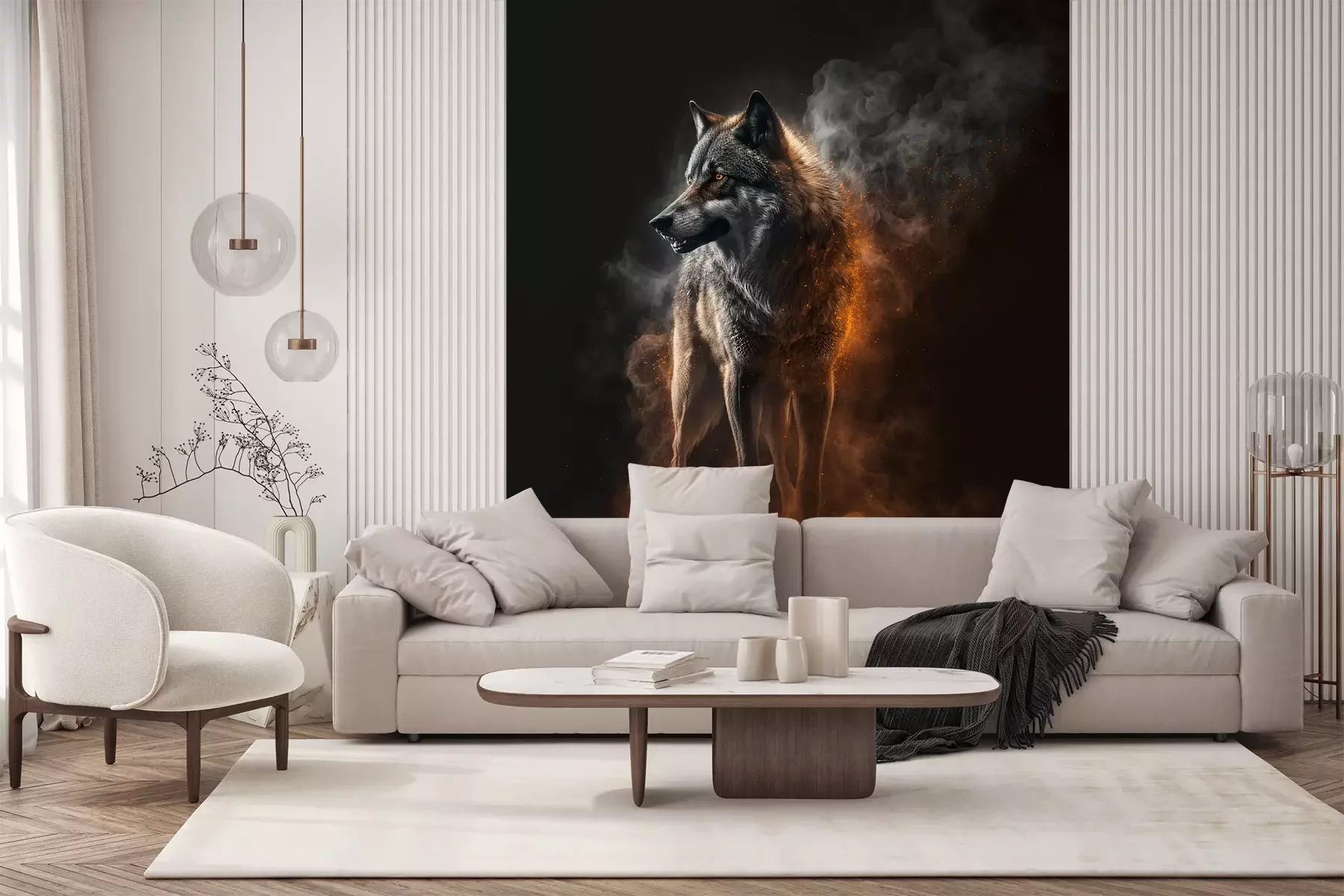 Das Material Premium+ besteht aus einer strukturierten Vinyl-Oberschicht und einem Trägermaterial (Vlies) mit einer Grammatur von 255 g/m², das kleine Unebenheiten der Wand zuverlässig kaschiert. Die feine Sandstruktur verleiht der Oberfläche eine luxuriöse Haptik, während das halbmatte Finish die Tiefe der Farben betont. Das Material ist dampfdurchlässig – so kann diese Fototapete auch in Küchen und Badezimmern eingesetzt werden. Die maximale Breite einer Tapetenbahn beträgt 100 cm. Bei größeren Abmessungen besteht die Fototapete aus mehreren gleich großen Bahnen. Der Kleber wird direkt auf die Wand aufgetragen, und die Fototapete wird auf Stoß angebracht, was für einen ästhetischen Effekt ohne sichtbare Fugen sorgt. Die Oberfläche ist pflegeleicht und kann bei Bedarf sanft mit einem feuchten Tuch abgewischt werden.