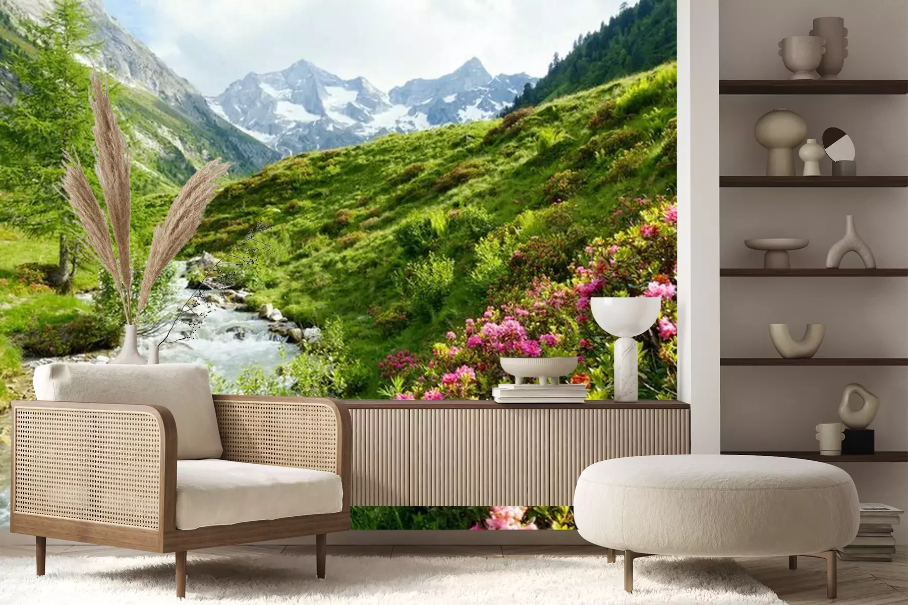 Blumen und Bach in den BergenProblemlose Lieferung durch vertrauenswürdige Spediteure