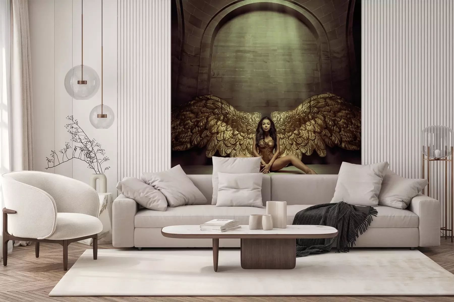 Die Fototapeten werden in Bahnen geliefert. Die Größe und die Anzahl der Bahnen, aus denen die gesamte Fototapete besteht, hängen vom gewählten Material ab. Wenn die Größe die maximale Breite des Materials überschreitet, besteht der Ausdruck aus mehreren gleich großen Bahnen.