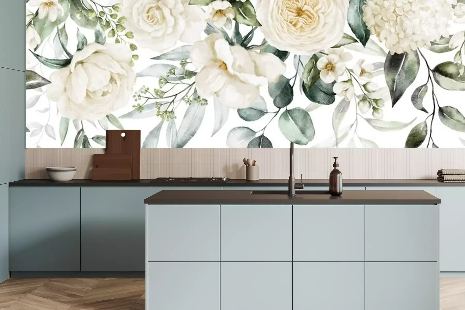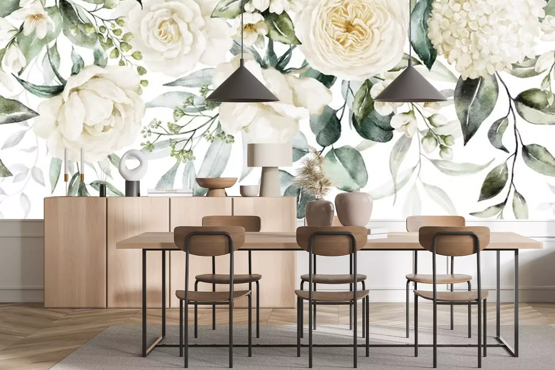Fototapete Eine Girlande aus weißen Rosen