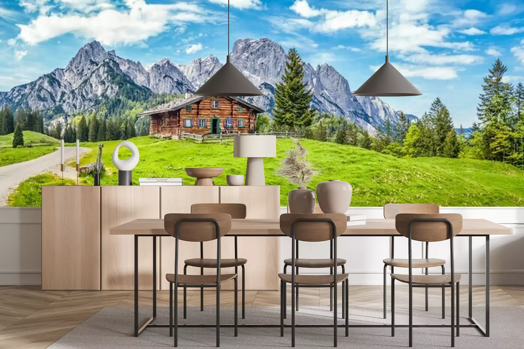 Das Material Premium+ besteht aus einer strukturierten Vinyl-Oberschicht und einem Trägermaterial (Vlies) mit einer Grammatur von 255 g/m², das kleine Unebenheiten der Wand zuverlässig kaschiert. Die feine Sandstruktur verleiht der Oberfläche eine luxuriöse Haptik, während das halbmatte Finish die Tiefe der Farben betont. Das Material ist dampfdurchlässig – so kann diese Fototapete auch in Küchen und Badezimmern eingesetzt werden. Die maximale Breite einer Tapetenbahn beträgt 100 cm. Bei größeren Abmessungen besteht die Fototapete aus mehreren gleich großen Bahnen. Der Kleber wird direkt auf die Wand aufgetragen, und die Fototapete wird auf Stoß angebracht, was für einen ästhetischen Effekt ohne sichtbare Fugen sorgt. Die Oberfläche ist pflegeleicht und kann bei Bedarf sanft mit einem feuchten Tuch abgewischt werden.