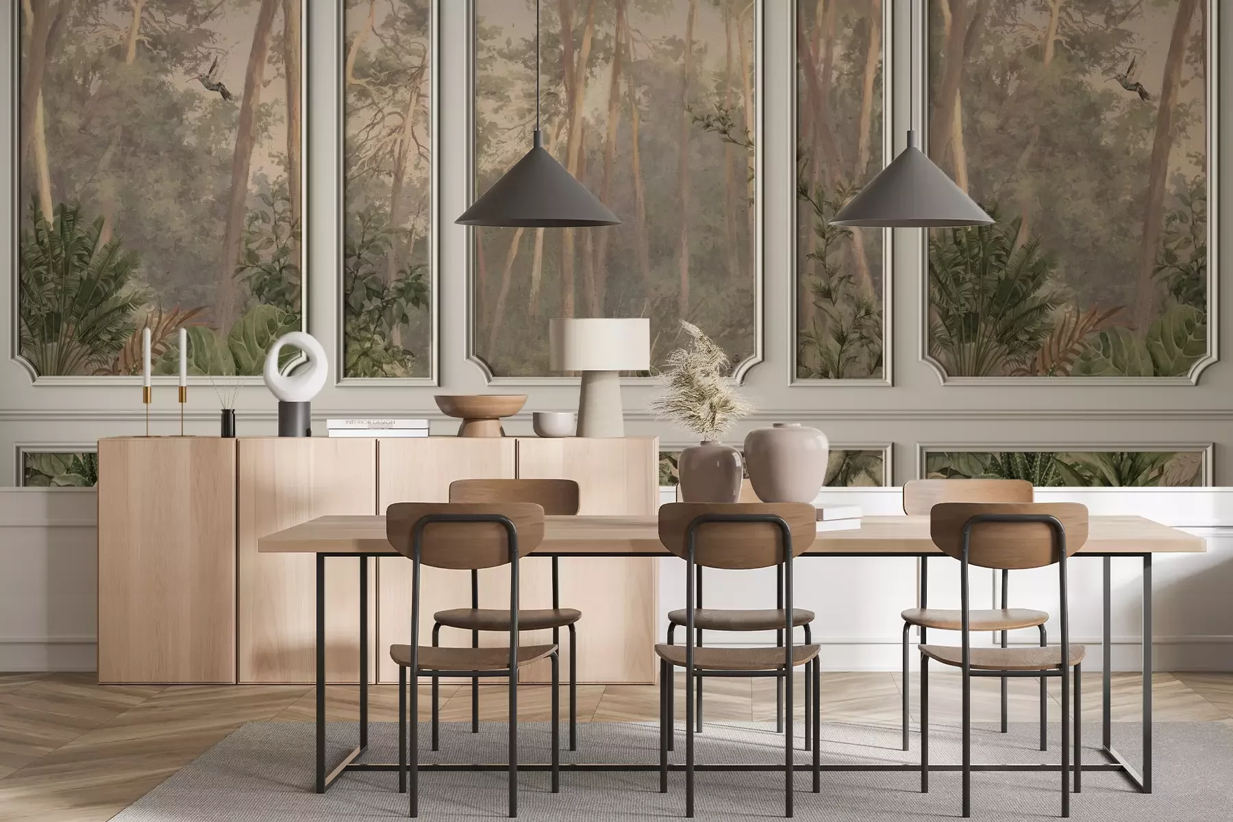 Das Material Premium+ besteht aus einer strukturierten Vinyl-Oberschicht und einem Trägermaterial (Vlies) mit einer Grammatur von 255 g/m², das kleine Unebenheiten der Wand zuverlässig kaschiert. Die feine Sandstruktur verleiht der Oberfläche eine luxuriöse Haptik, während das halbmatte Finish die Tiefe der Farben betont. Das Material ist dampfdurchlässig – so kann diese Fototapete auch in Küchen und Badezimmern eingesetzt werden. Die maximale Breite einer Tapetenbahn beträgt 100 cm. Bei größeren Abmessungen besteht die Fototapete aus mehreren gleich großen Bahnen. Der Kleber wird direkt auf die Wand aufgetragen, und die Fototapete wird auf Stoß angebracht, was für einen ästhetischen Effekt ohne sichtbare Fugen sorgt. Die Oberfläche ist pflegeleicht und kann bei Bedarf sanft mit einem feuchten Tuch abgewischt werden.