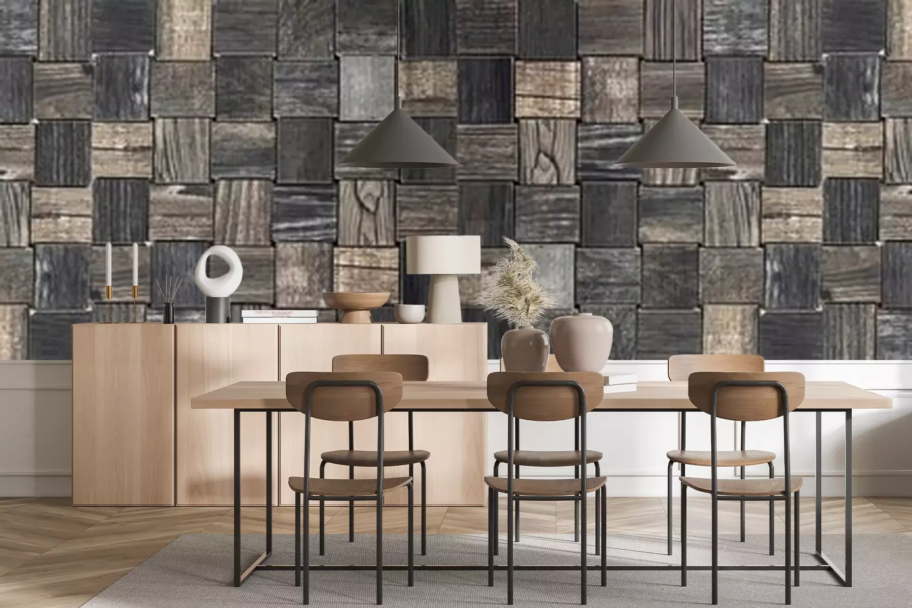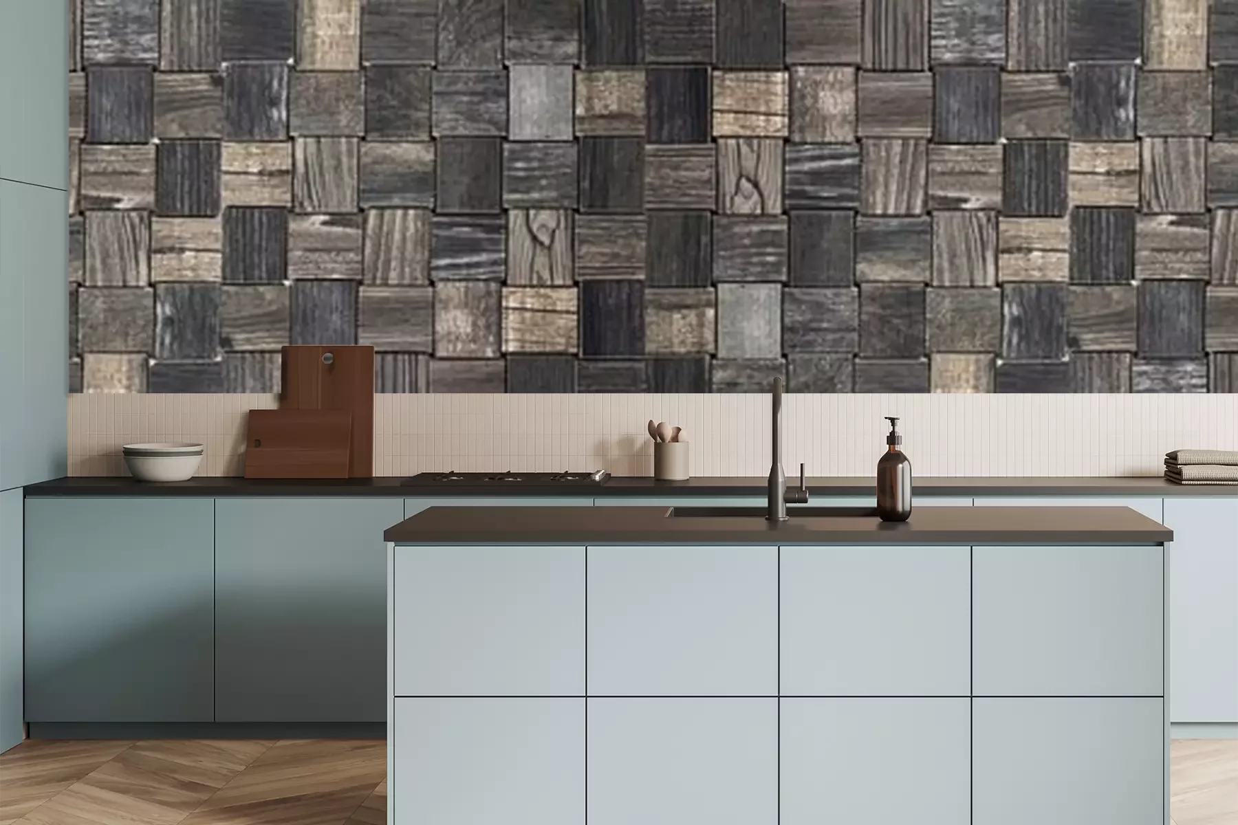 Fototapete Eine Mosaik aus Holzklötzen