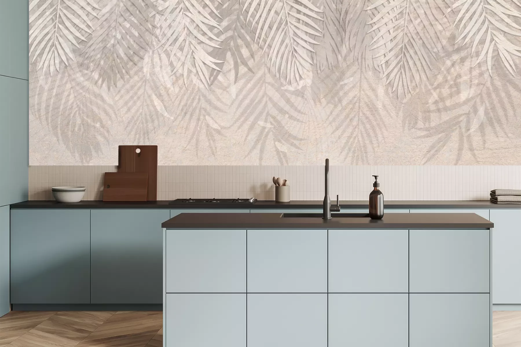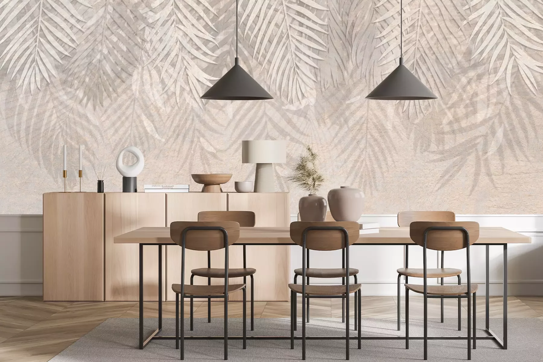 Das Material Premium+ besteht aus einer strukturierten Vinyl-Oberschicht und einem Trägermaterial (Vlies) mit einer Grammatur von 255 g/m², das kleine Unebenheiten der Wand zuverlässig kaschiert. Die feine Sandstruktur verleiht der Oberfläche eine luxuriöse Haptik, während das halbmatte Finish die Tiefe der Farben betont. Das Material ist dampfdurchlässig – so kann diese Fototapete auch in Küchen und Badezimmern eingesetzt werden. Die maximale Breite einer Tapetenbahn beträgt 100 cm. Bei größeren Abmessungen besteht die Fototapete aus mehreren gleich großen Bahnen. Der Kleber wird direkt auf die Wand aufgetragen, und die Fototapete wird auf Stoß angebracht, was für einen ästhetischen Effekt ohne sichtbare Fugen sorgt. Die Oberfläche ist pflegeleicht und kann bei Bedarf sanft mit einem feuchten Tuch abgewischt werden.