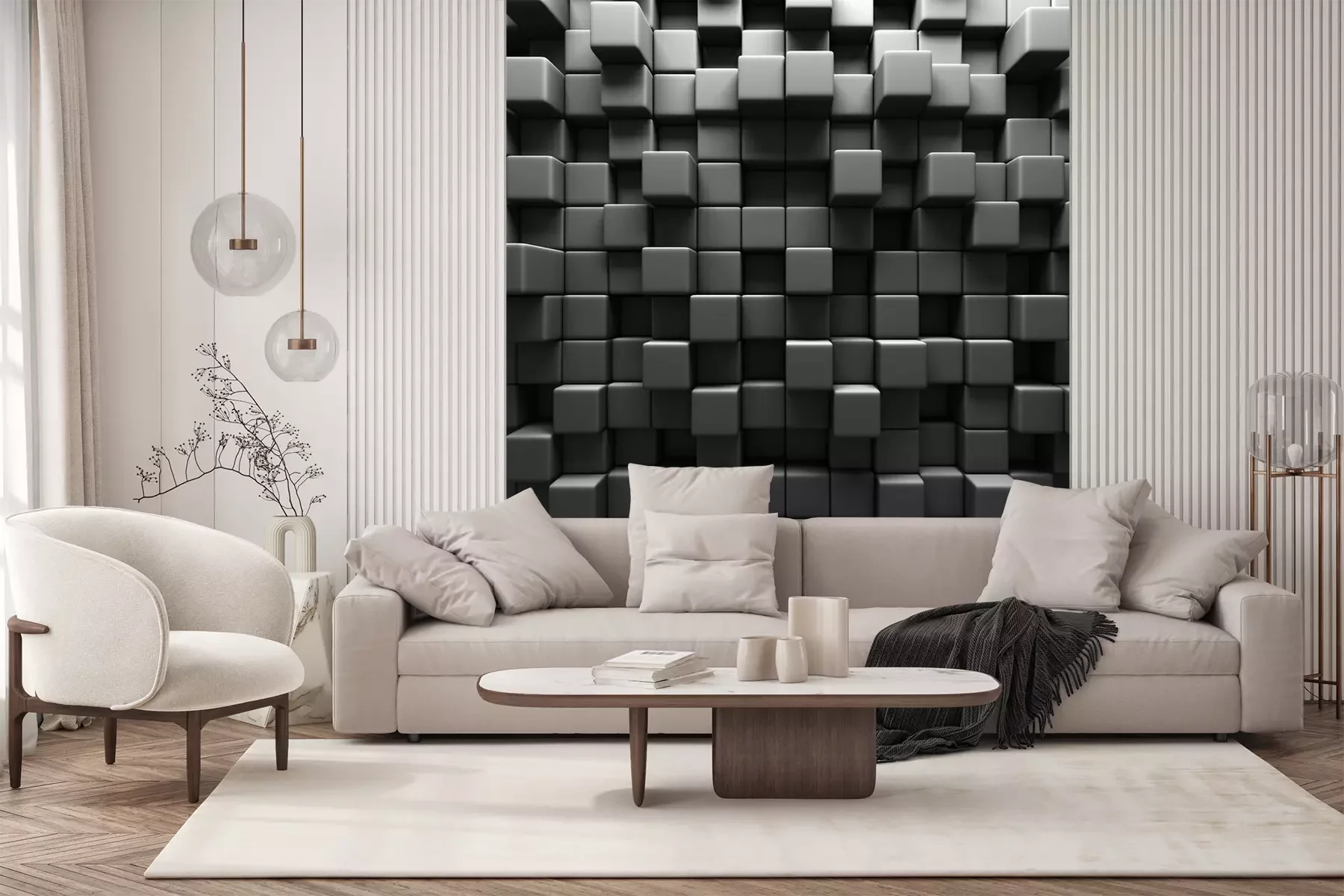 Die Fototapeten werden in Bahnen geliefert. Die Größe und die Anzahl der Bahnen, aus denen die gesamte Fototapete besteht, hängen vom gewählten Material ab. Wenn die Größe die maximale Breite des Materials überschreitet, besteht der Ausdruck aus mehreren gleich großen Bahnen.