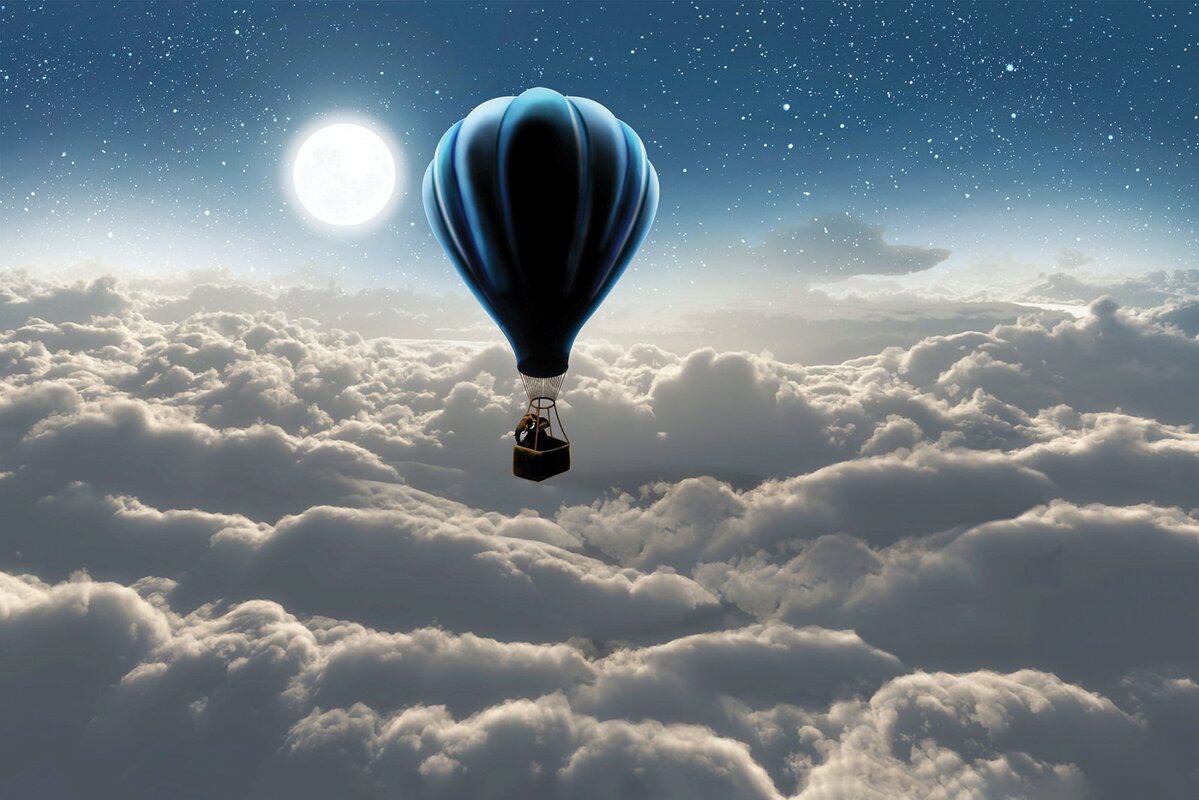 Fototapete: Elefant in einem Ballon, der über den Wolken schwebt