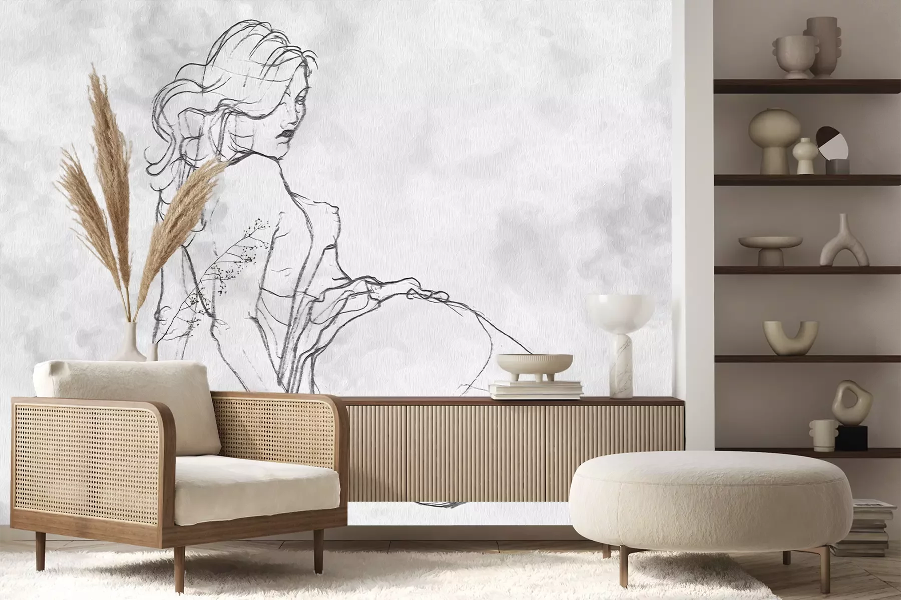 Das Material Premium+ besteht aus einer strukturierten Vinyl-Oberschicht und einem Trägermaterial (Vlies) mit einer Grammatur von 255 g/m², das kleine Unebenheiten der Wand zuverlässig kaschiert. Die feine Sandstruktur verleiht der Oberfläche eine luxuriöse Haptik, während das halbmatte Finish die Tiefe der Farben betont. Das Material ist dampfdurchlässig – so kann diese Fototapete auch in Küchen und Badezimmern eingesetzt werden. Die maximale Breite einer Tapetenbahn beträgt 100 cm. Bei größeren Abmessungen besteht die Fototapete aus mehreren gleich großen Bahnen. Der Kleber wird direkt auf die Wand aufgetragen, und die Fototapete wird auf Stoß angebracht, was für einen ästhetischen Effekt ohne sichtbare Fugen sorgt. Die Oberfläche ist pflegeleicht und kann bei Bedarf sanft mit einem feuchten Tuch abgewischt werden.
