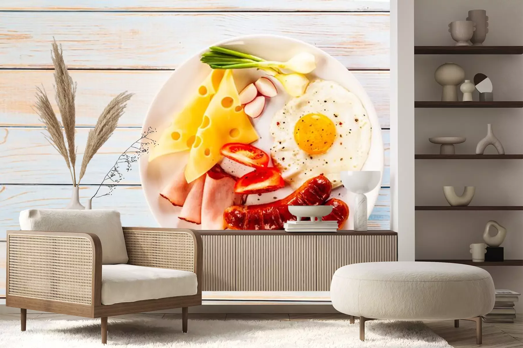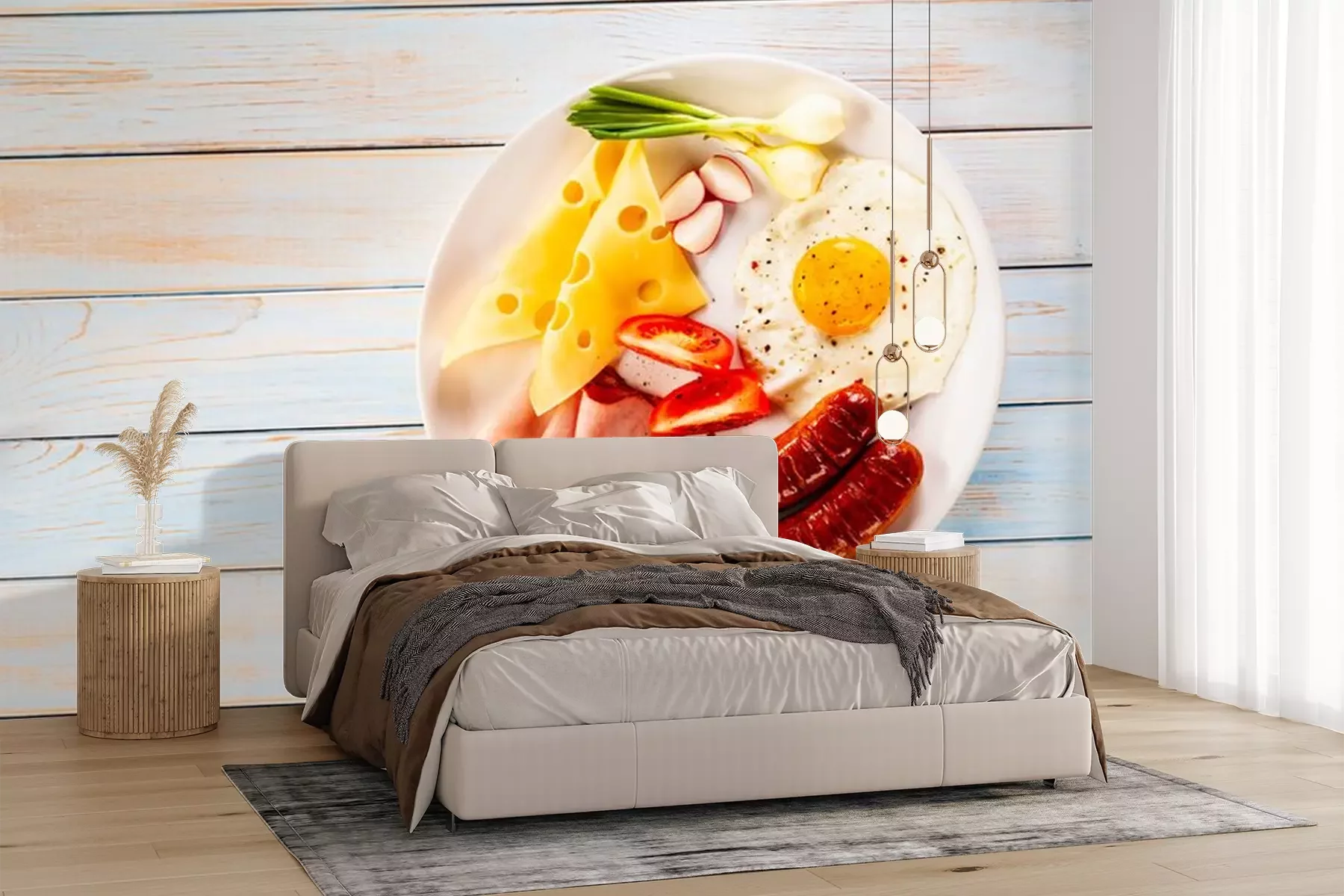 Fototapete Englischer Frühstück auf blauen Brettern