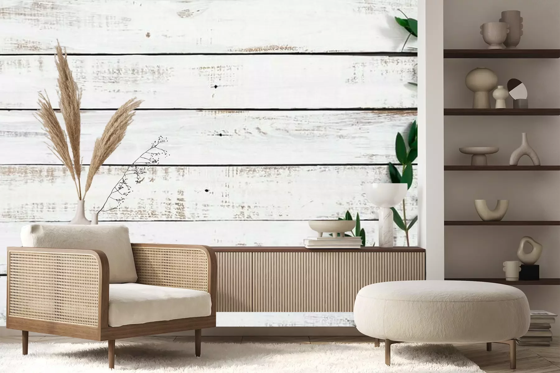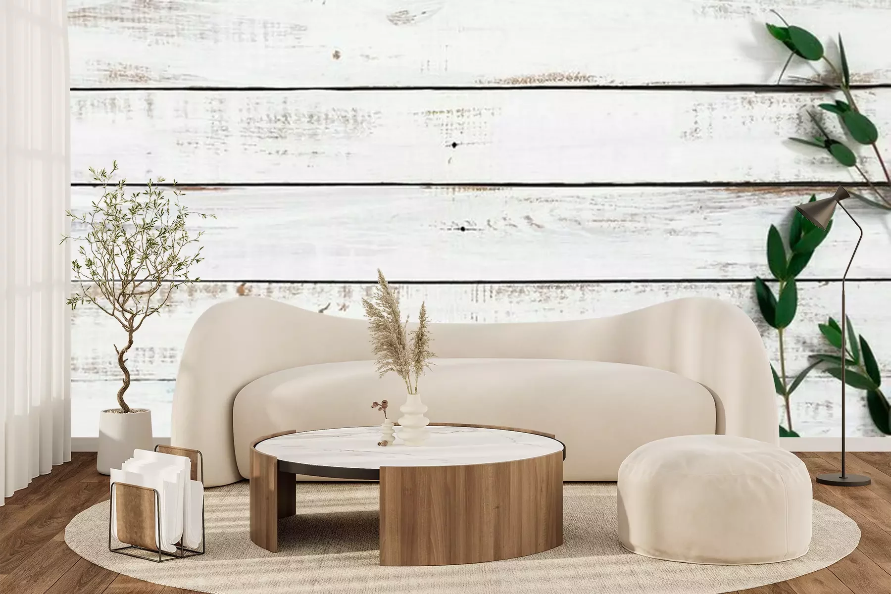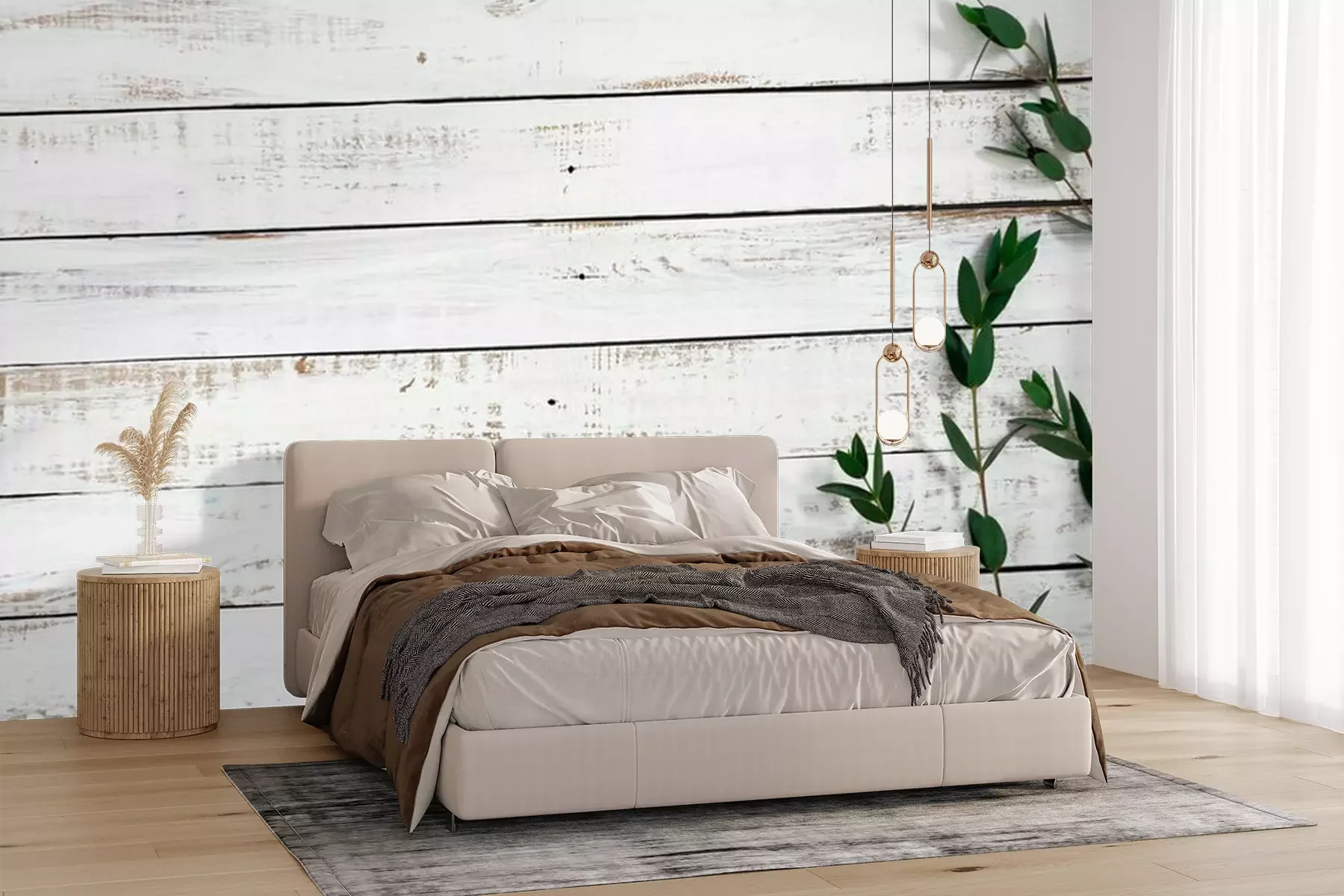 Fototapete Eukalyptusblätter auf dem Holzboden