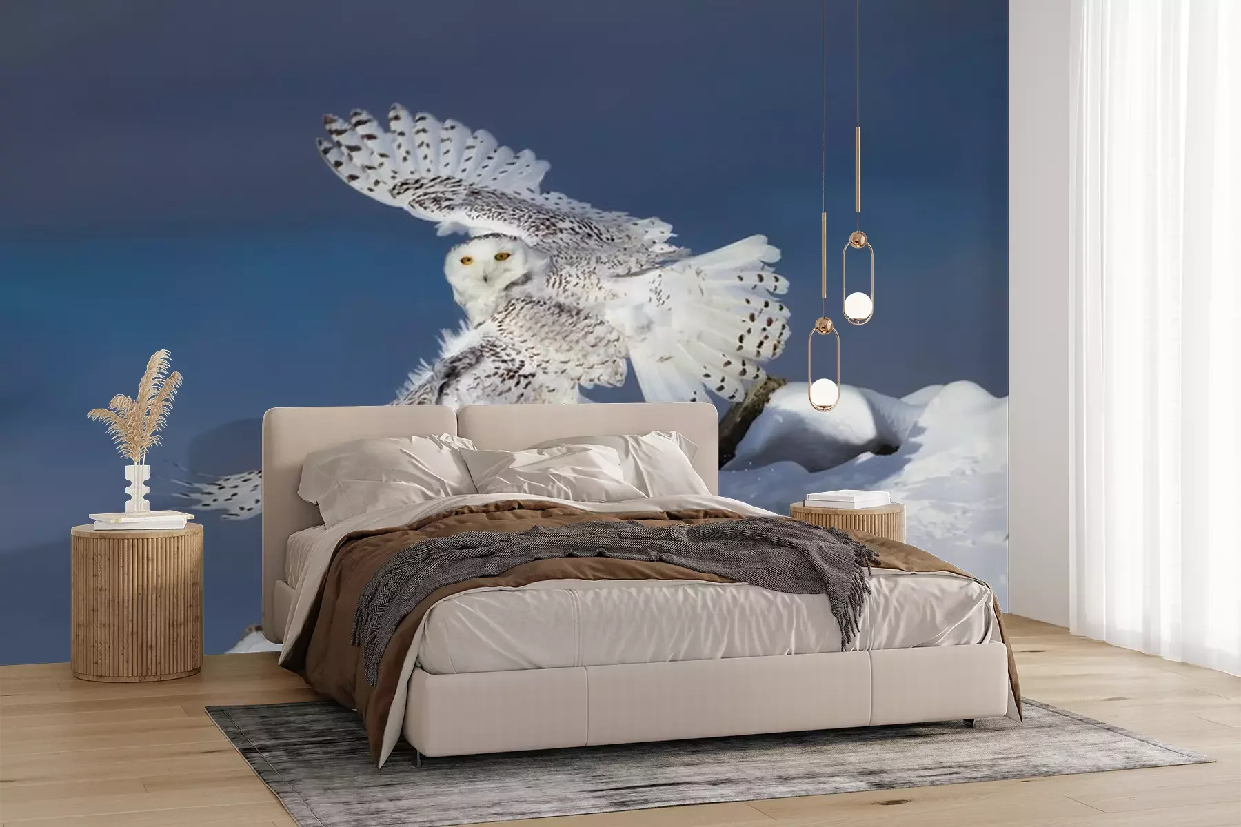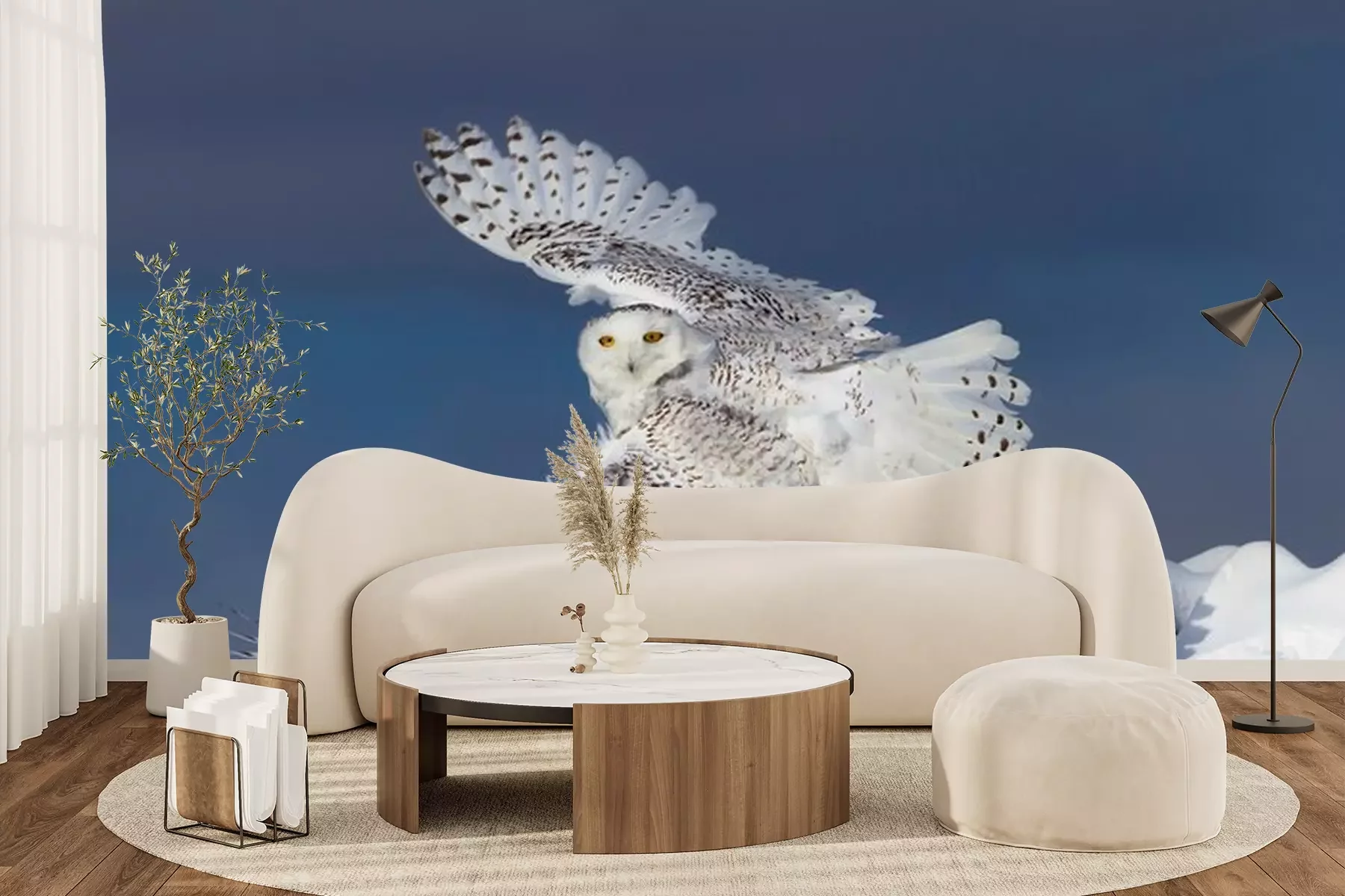 Fototapete Eule über weißem Schnee