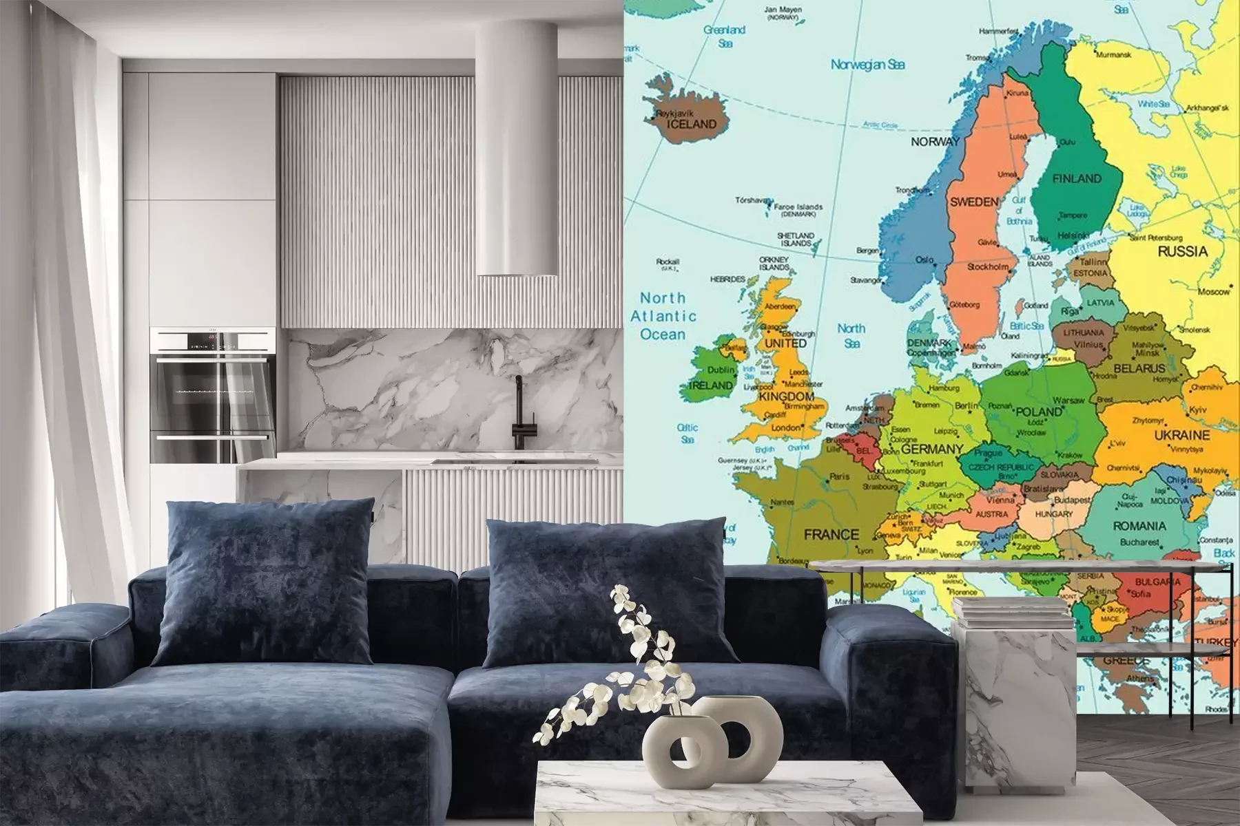 Fototapete Europakarte mit Gradnetz