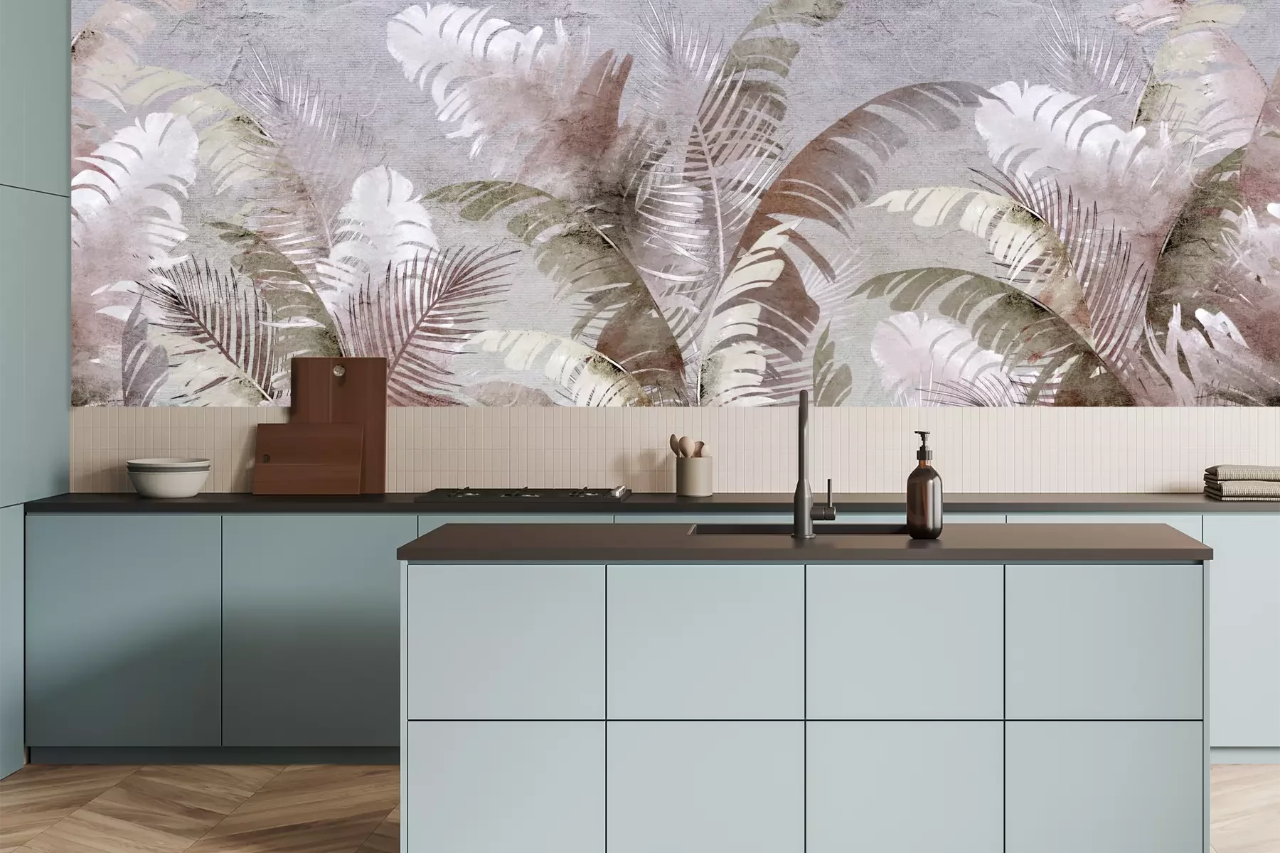 Das Material Premium+ besteht aus einer strukturierten Vinyl-Oberschicht und einem Trägermaterial (Vlies) mit einer Grammatur von 255 g/m², das kleine Unebenheiten der Wand zuverlässig kaschiert. Die feine Sandstruktur verleiht der Oberfläche eine luxuriöse Haptik, während das halbmatte Finish die Tiefe der Farben betont. Das Material ist dampfdurchlässig – so kann diese Fototapete auch in Küchen und Badezimmern eingesetzt werden. Die maximale Breite einer Tapetenbahn beträgt 100 cm. Bei größeren Abmessungen besteht die Fototapete aus mehreren gleich großen Bahnen. Der Kleber wird direkt auf die Wand aufgetragen, und die Fototapete wird auf Stoß angebracht, was für einen ästhetischen Effekt ohne sichtbare Fugen sorgt. Die Oberfläche ist pflegeleicht und kann bei Bedarf sanft mit einem feuchten Tuch abgewischt werden.