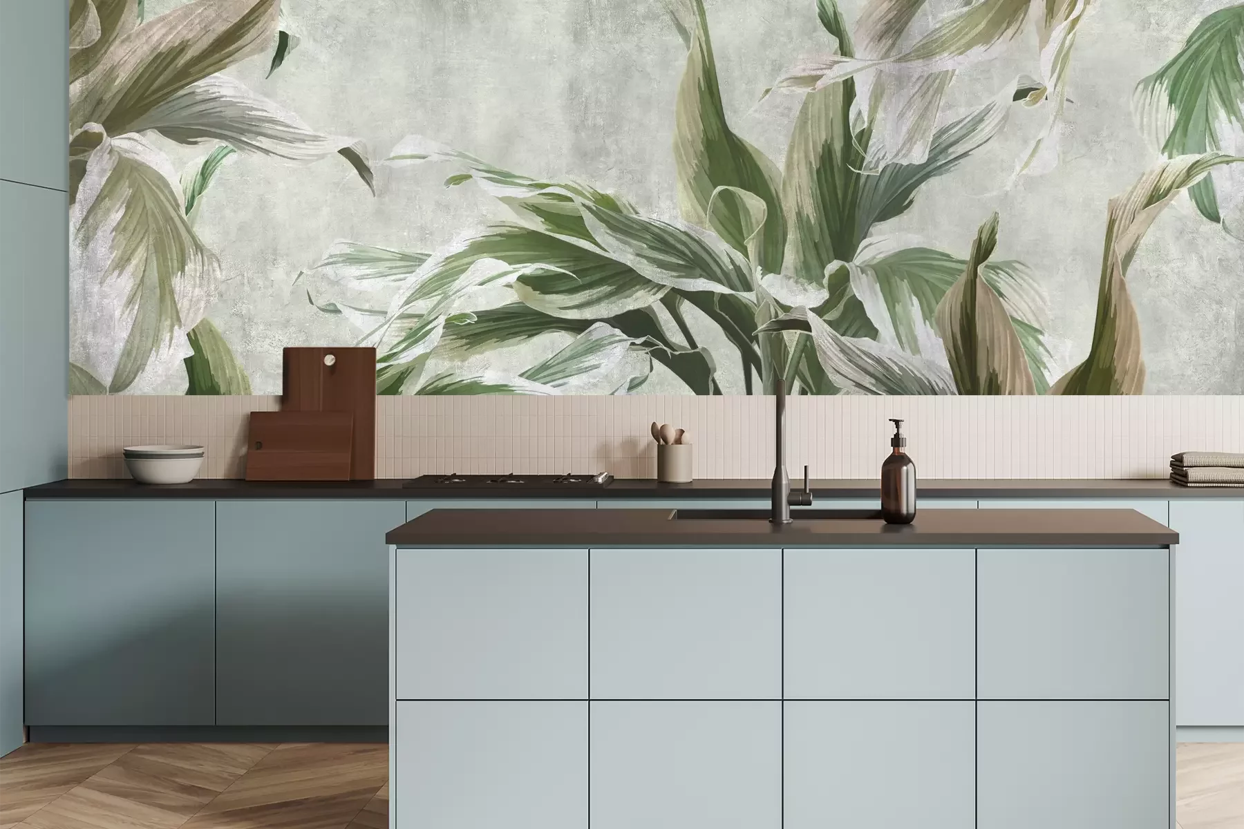 Das Material Premium+ besteht aus einer strukturierten Vinyl-Oberschicht und einem Trägermaterial (Vlies) mit einer Grammatur von 255 g/m², das kleine Unebenheiten der Wand zuverlässig kaschiert. Die feine Sandstruktur verleiht der Oberfläche eine luxuriöse Haptik, während das halbmatte Finish die Tiefe der Farben betont. Das Material ist dampfdurchlässig – so kann diese Fototapete auch in Küchen und Badezimmern eingesetzt werden. Die maximale Breite einer Tapetenbahn beträgt 100 cm. Bei größeren Abmessungen besteht die Fototapete aus mehreren gleich großen Bahnen. Der Kleber wird direkt auf die Wand aufgetragen, und die Fototapete wird auf Stoß angebracht, was für einen ästhetischen Effekt ohne sichtbare Fugen sorgt. Die Oberfläche ist pflegeleicht und kann bei Bedarf sanft mit einem feuchten Tuch abgewischt werden.