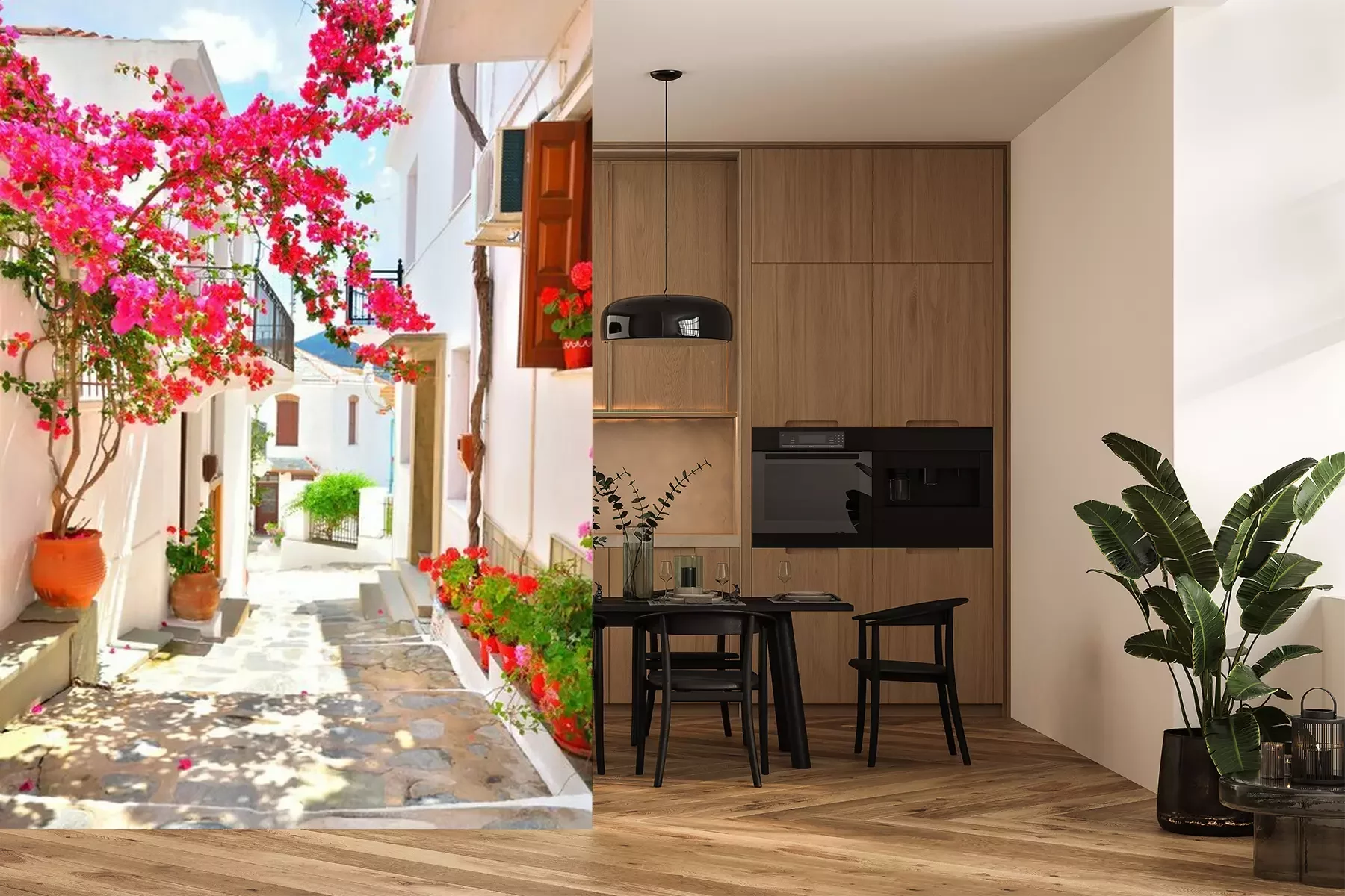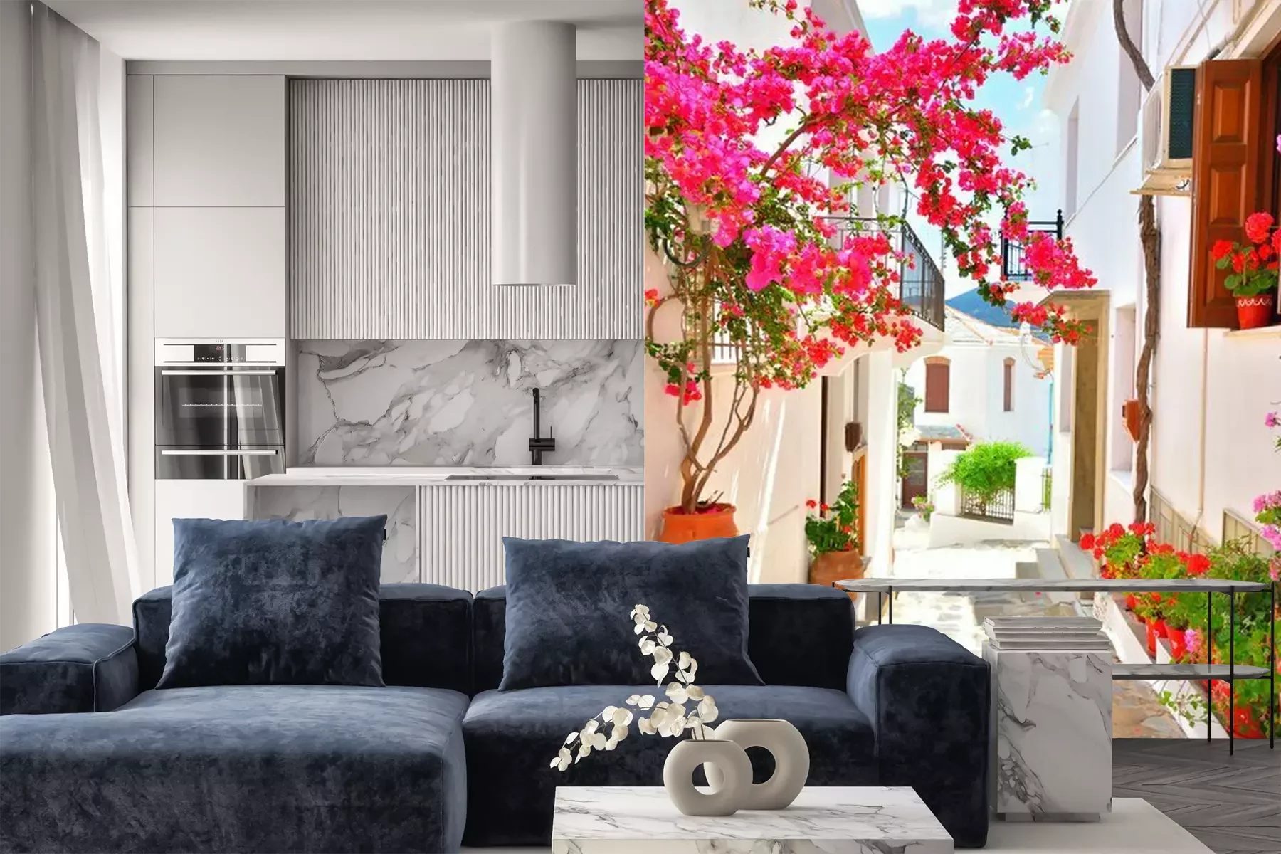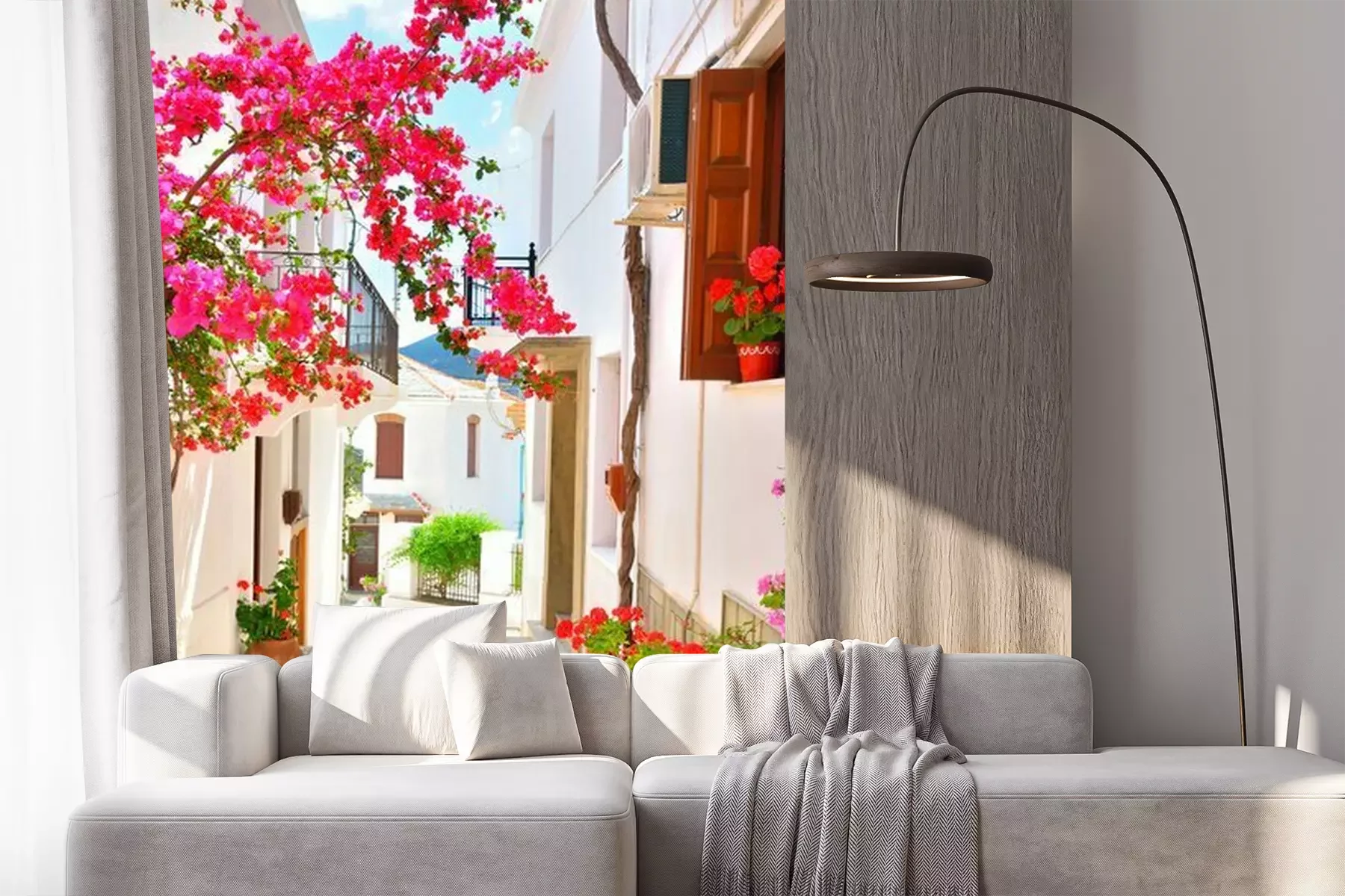 Fototapete Fabelhafte weiße Häuser mit Blumen