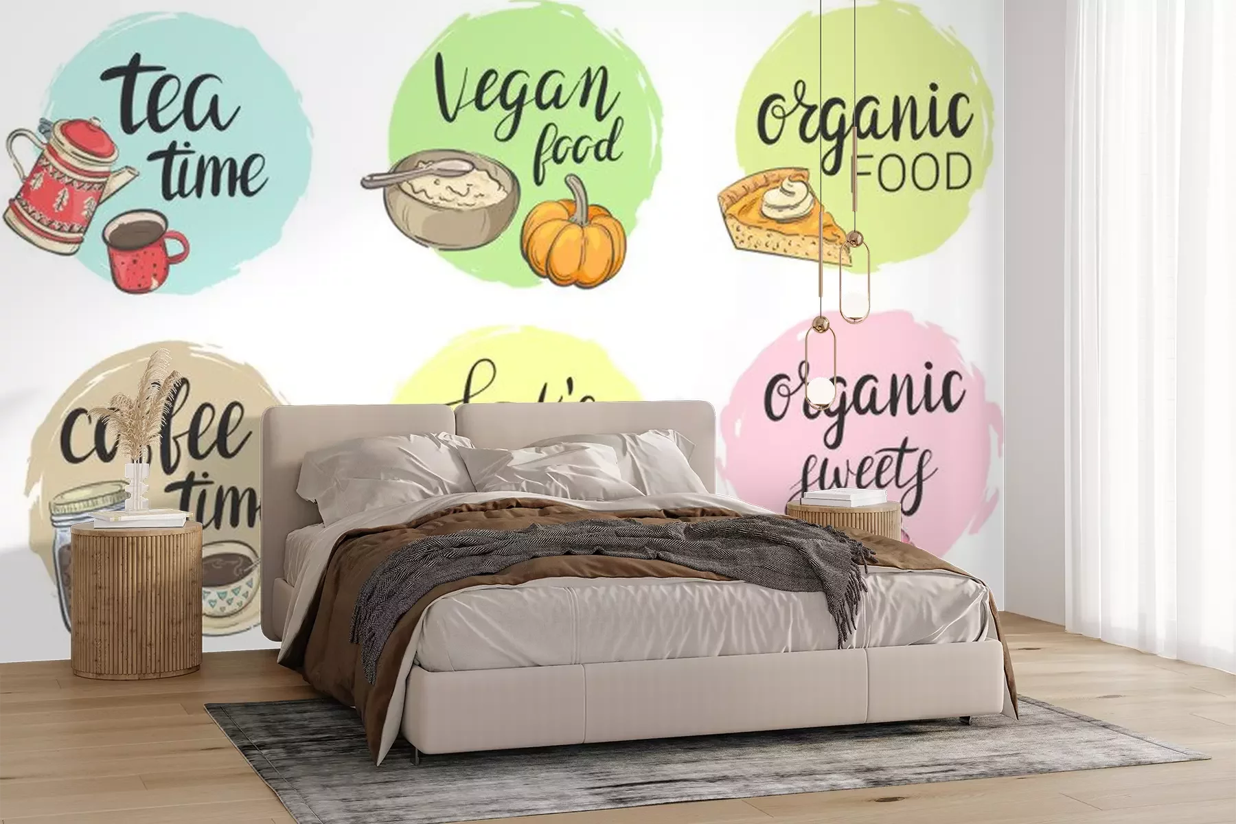 Fototapete Farbenfrohe Lebensmitteletiketten