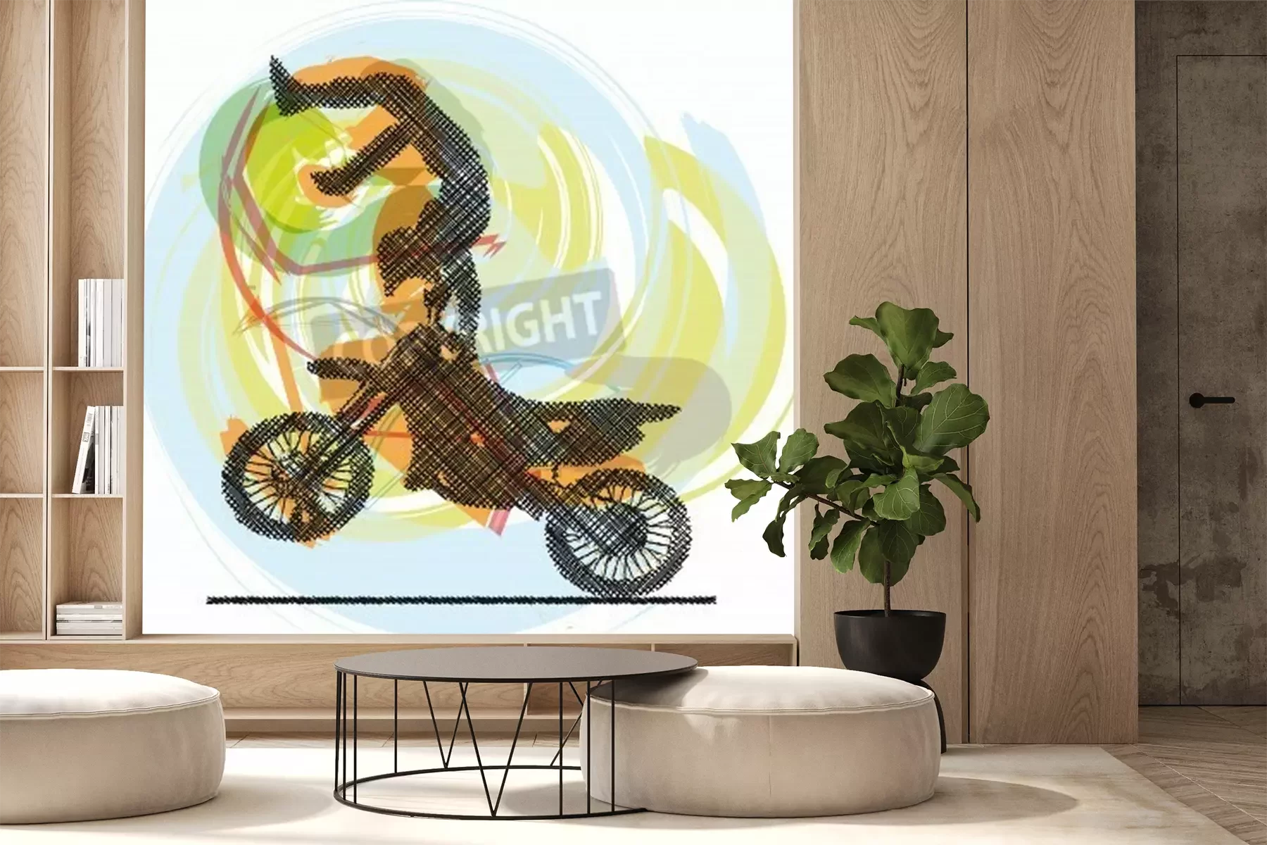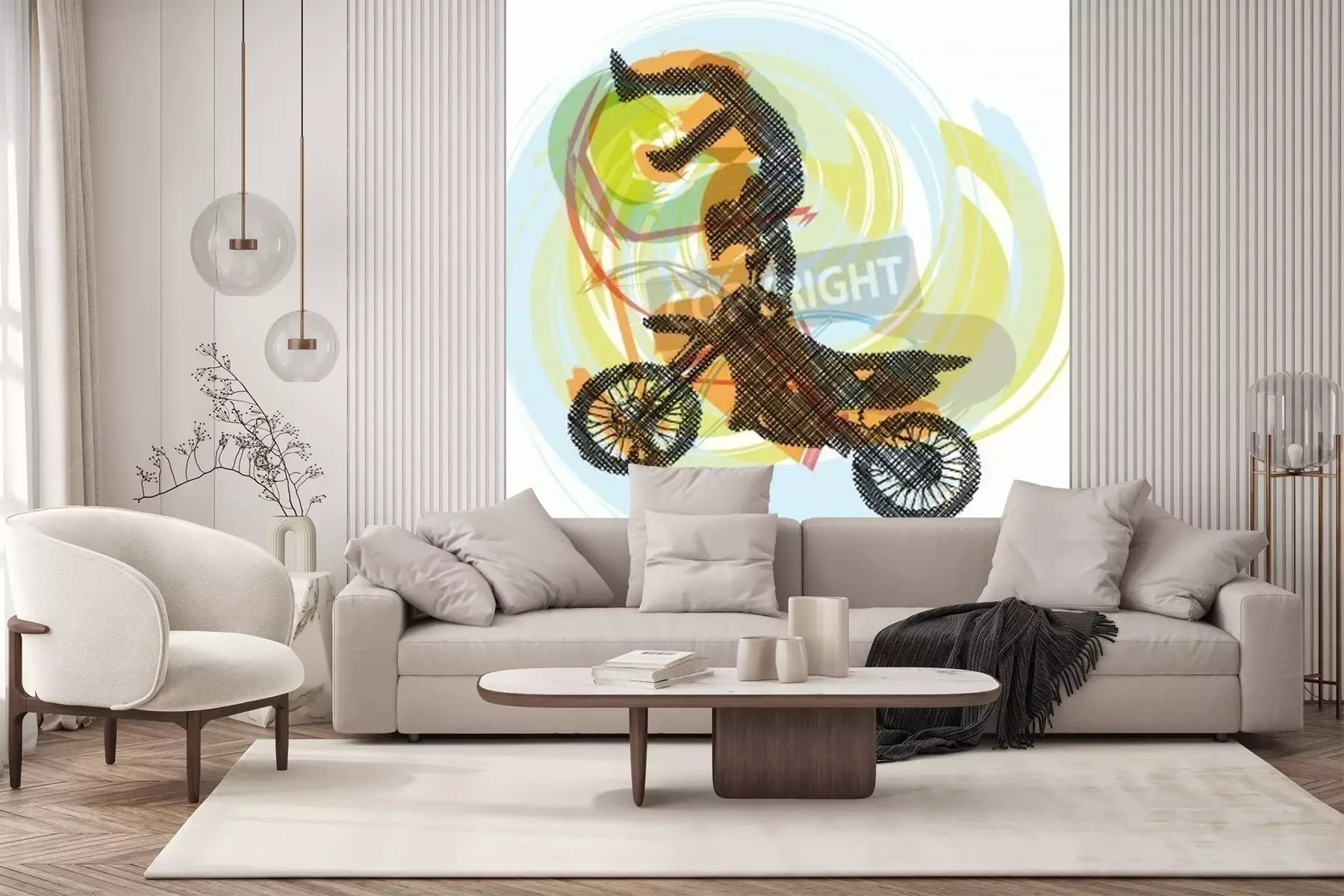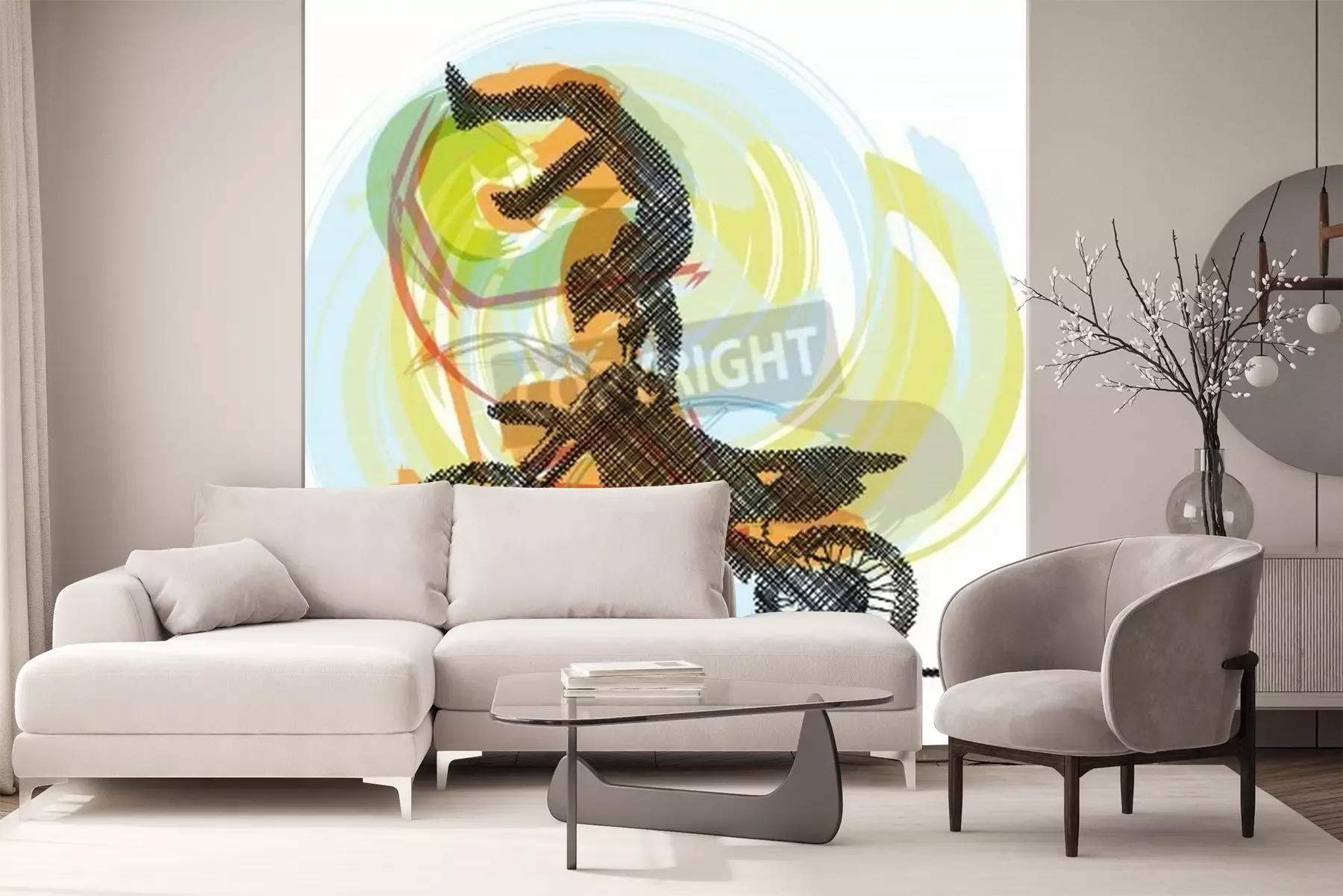 Fototapete Farbenfrohe Motorrad-Abstraktion