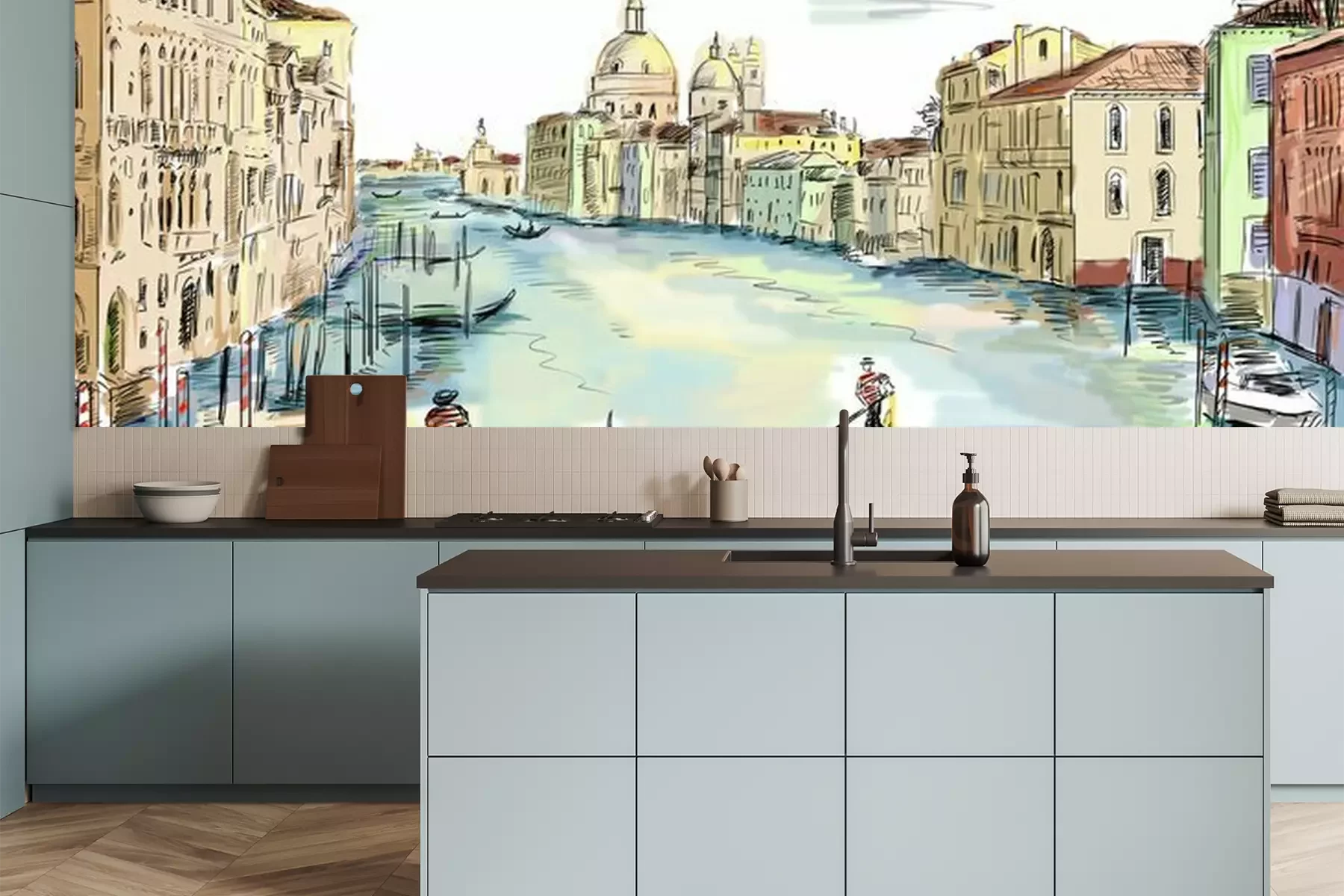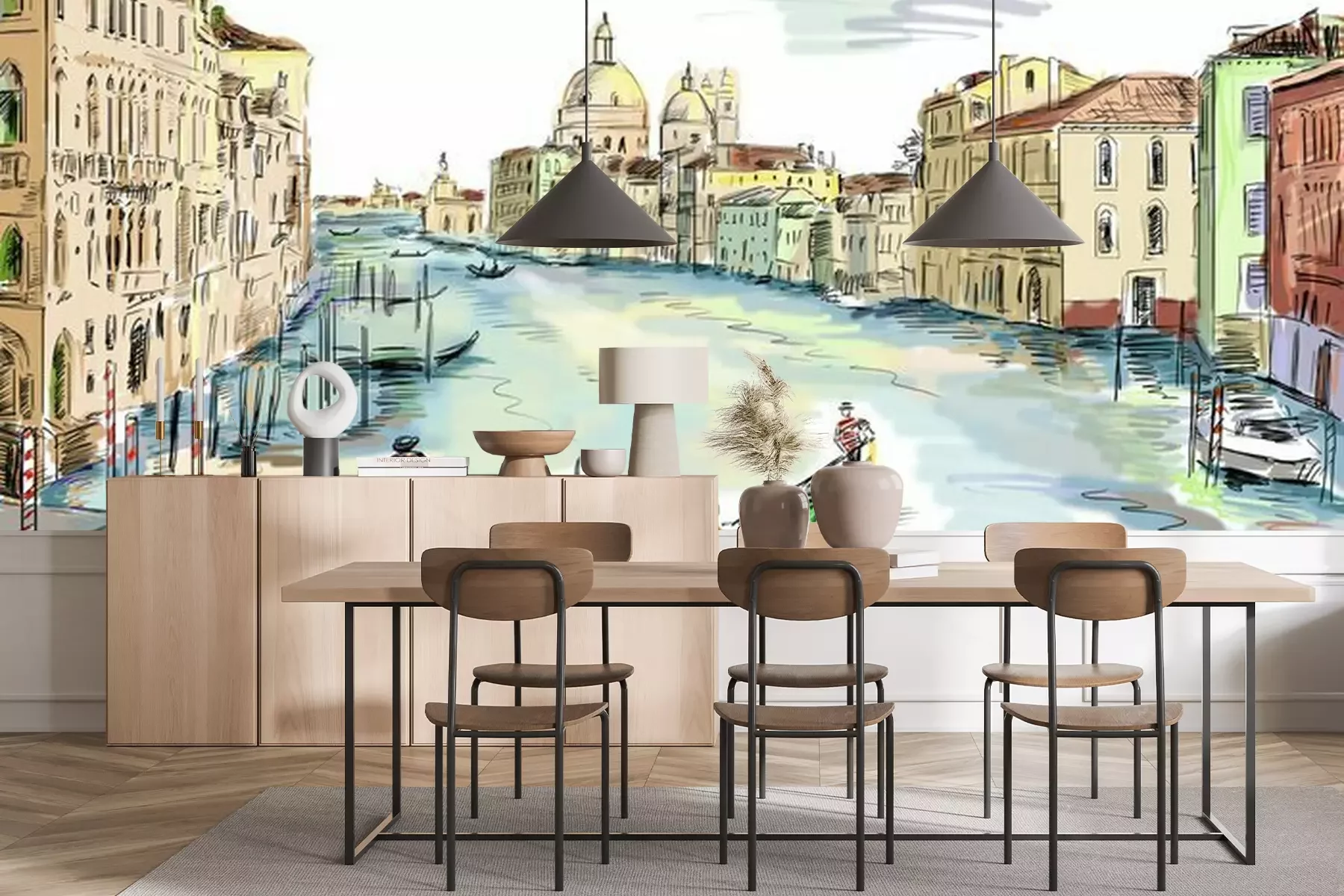 Fototapete Farbenfrohe Skizze des Panoramas von Venedig