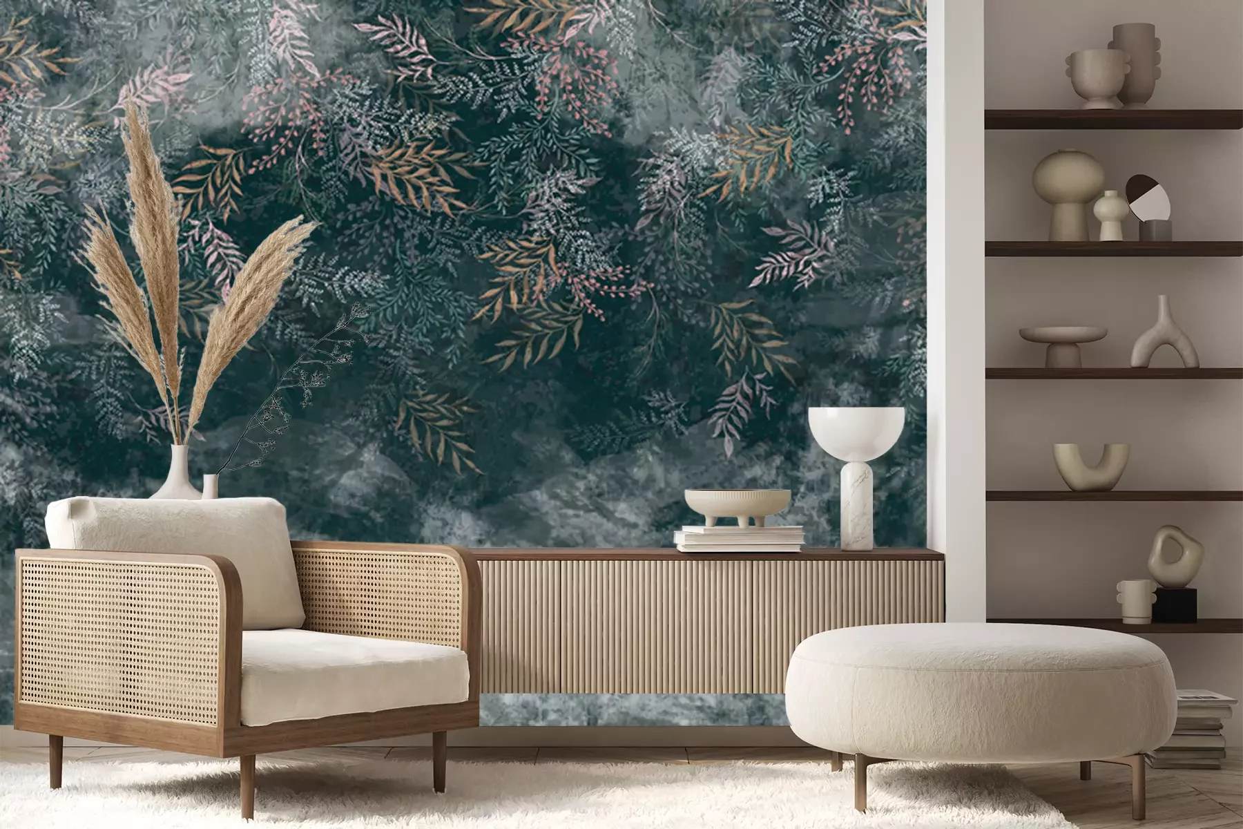 Das Material Premium+ besteht aus einer strukturierten Vinyl-Oberschicht und einem Trägermaterial (Vlies) mit einer Grammatur von 255 g/m², das kleine Unebenheiten der Wand zuverlässig kaschiert. Die feine Sandstruktur verleiht der Oberfläche eine luxuriöse Haptik, während das halbmatte Finish die Tiefe der Farben betont. Das Material ist dampfdurchlässig – so kann diese Fototapete auch in Küchen und Badezimmern eingesetzt werden. Die maximale Breite einer Tapetenbahn beträgt 100 cm. Bei größeren Abmessungen besteht die Fototapete aus mehreren gleich großen Bahnen. Der Kleber wird direkt auf die Wand aufgetragen, und die Fototapete wird auf Stoß angebracht, was für einen ästhetischen Effekt ohne sichtbare Fugen sorgt. Die Oberfläche ist pflegeleicht und kann bei Bedarf sanft mit einem feuchten Tuch abgewischt werden.