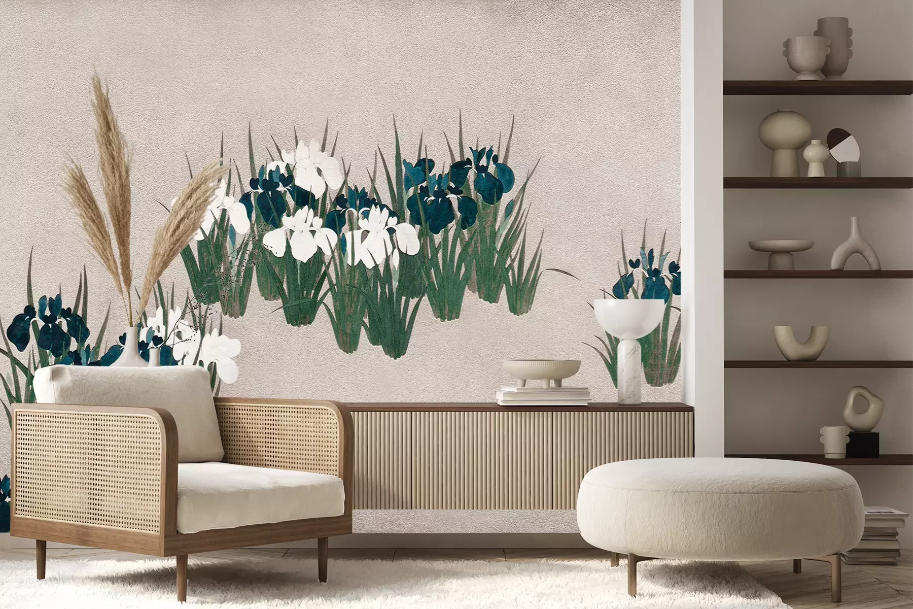 Das Material Premium+ besteht aus einer strukturierten Vinyl-Oberschicht und einem Trägermaterial (Vlies) mit einer Grammatur von 255 g/m², das kleine Unebenheiten der Wand zuverlässig kaschiert. Die feine Sandstruktur verleiht der Oberfläche eine luxuriöse Haptik, während das halbmatte Finish die Tiefe der Farben betont. Das Material ist dampfdurchlässig – so kann diese Fototapete auch in Küchen und Badezimmern eingesetzt werden. Die maximale Breite einer Tapetenbahn beträgt 100 cm. Bei größeren Abmessungen besteht die Fototapete aus mehreren gleich großen Bahnen. Der Kleber wird direkt auf die Wand aufgetragen, und die Fototapete wird auf Stoß angebracht, was für einen ästhetischen Effekt ohne sichtbare Fugen sorgt. Die Oberfläche ist pflegeleicht und kann bei Bedarf sanft mit einem feuchten Tuch abgewischt werden.