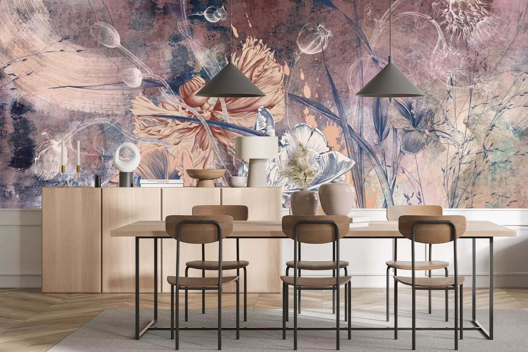 Das Material Premium+ besteht aus einer strukturierten Vinyl-Oberschicht und einem Trägermaterial (Vlies) mit einer Grammatur von 255 g/m², das kleine Unebenheiten der Wand zuverlässig kaschiert. Die feine Sandstruktur verleiht der Oberfläche eine luxuriöse Haptik, während das halbmatte Finish die Tiefe der Farben betont. Das Material ist dampfdurchlässig – so kann diese Fototapete auch in Küchen und Badezimmern eingesetzt werden. Die maximale Breite einer Tapetenbahn beträgt 100 cm. Bei größeren Abmessungen besteht die Fototapete aus mehreren gleich großen Bahnen. Der Kleber wird direkt auf die Wand aufgetragen, und die Fototapete wird auf Stoß angebracht, was für einen ästhetischen Effekt ohne sichtbare Fugen sorgt. Die Oberfläche ist pflegeleicht und kann bei Bedarf sanft mit einem feuchten Tuch abgewischt werden.