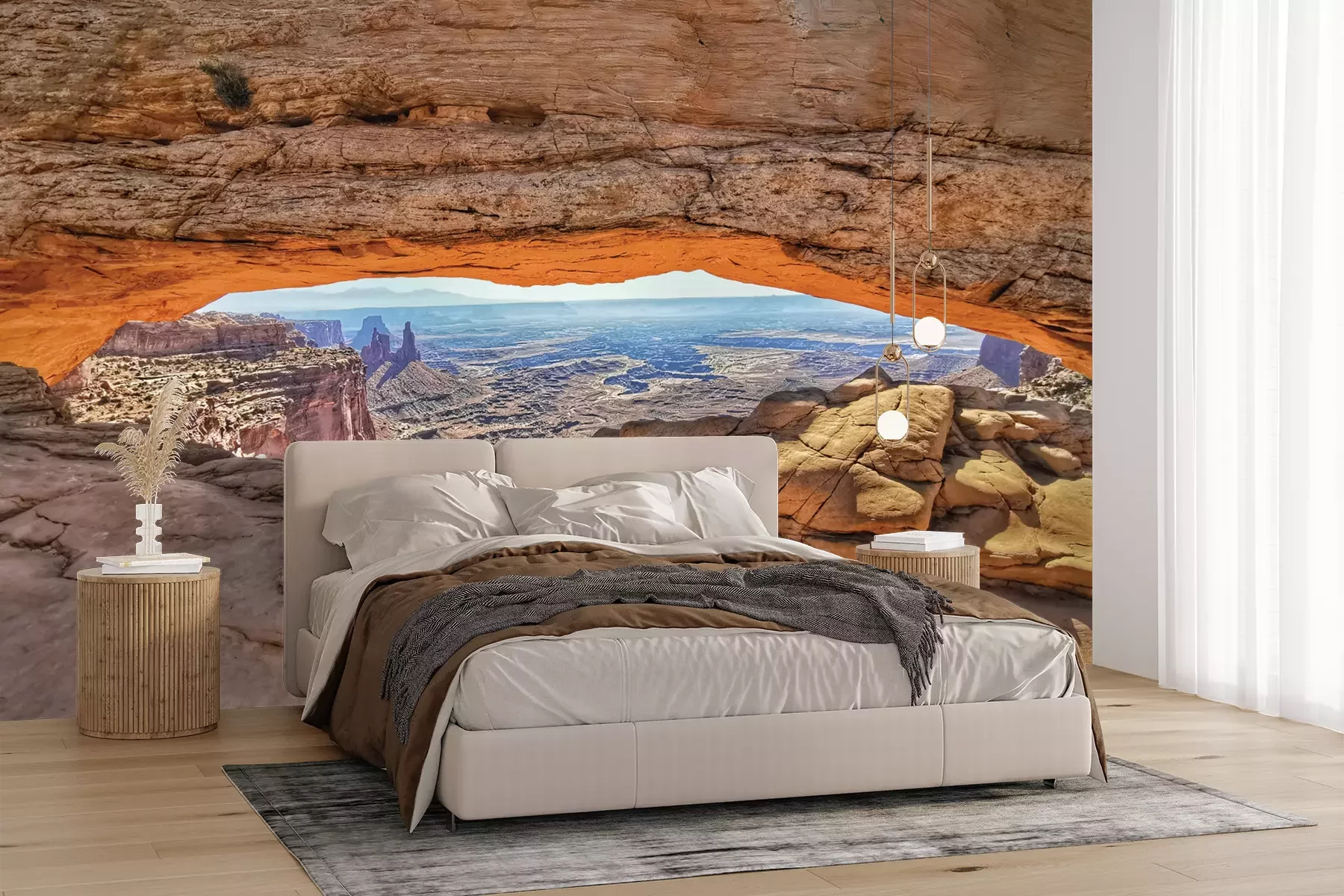 Das Material Premium+ besteht aus einer strukturierten Vinyl-Oberschicht und einem Trägermaterial (Vlies) mit einer Grammatur von 255 g/m², das kleine Unebenheiten der Wand zuverlässig kaschiert. Die feine Sandstruktur verleiht der Oberfläche eine luxuriöse Haptik, während das halbmatte Finish die Tiefe der Farben betont. Das Material ist dampfdurchlässig – so kann diese Fototapete auch in Küchen und Badezimmern eingesetzt werden. Die maximale Breite einer Tapetenbahn beträgt 100 cm. Bei größeren Abmessungen besteht die Fototapete aus mehreren gleich großen Bahnen. Der Kleber wird direkt auf die Wand aufgetragen, und die Fototapete wird auf Stoß angebracht, was für einen ästhetischen Effekt ohne sichtbare Fugen sorgt. Die Oberfläche ist pflegeleicht und kann bei Bedarf sanft mit einem feuchten Tuch abgewischt werden.
