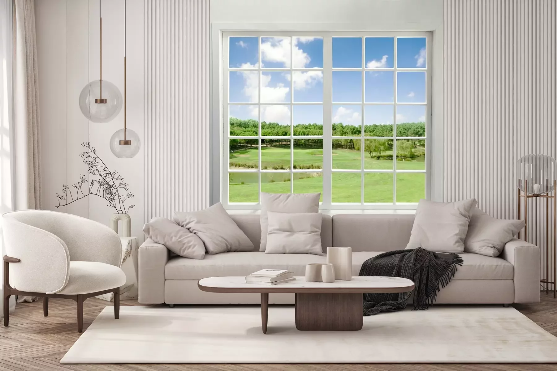 Die Fototapeten werden in Bahnen geliefert. Die Größe und die Anzahl der Bahnen, aus denen die gesamte Fototapete besteht, hängen vom gewählten Material ab. Wenn die Größe die maximale Breite des Materials überschreitet, besteht der Ausdruck aus mehreren gleich großen Bahnen.
