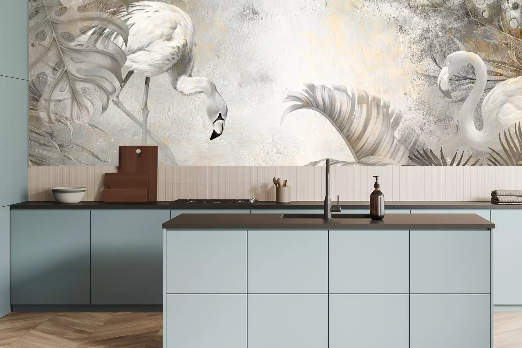 Das Material Premium+ besteht aus einer strukturierten Vinyl-Oberschicht und einem Trägermaterial (Vlies) mit einer Grammatur von 255 g/m², das kleine Unebenheiten der Wand zuverlässig kaschiert. Die feine Sandstruktur verleiht der Oberfläche eine luxuriöse Haptik, während das halbmatte Finish die Tiefe der Farben betont. Das Material ist dampfdurchlässig – so kann diese Fototapete auch in Küchen und Badezimmern eingesetzt werden. Die maximale Breite einer Tapetenbahn beträgt 100 cm. Bei größeren Abmessungen besteht die Fototapete aus mehreren gleich großen Bahnen. Der Kleber wird direkt auf die Wand aufgetragen, und die Fototapete wird auf Stoß angebracht, was für einen ästhetischen Effekt ohne sichtbare Fugen sorgt. Die Oberfläche ist pflegeleicht und kann bei Bedarf sanft mit einem feuchten Tuch abgewischt werden.