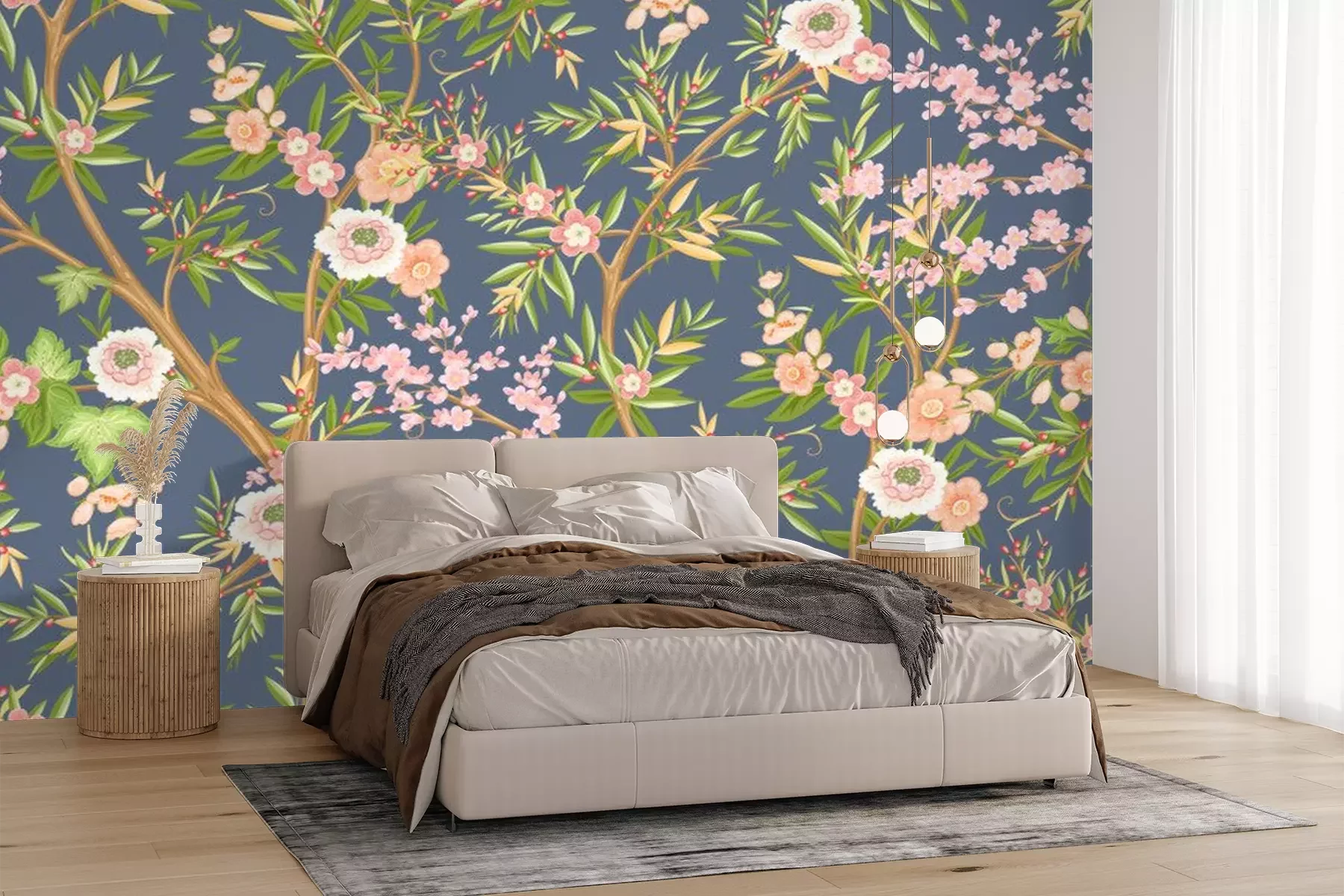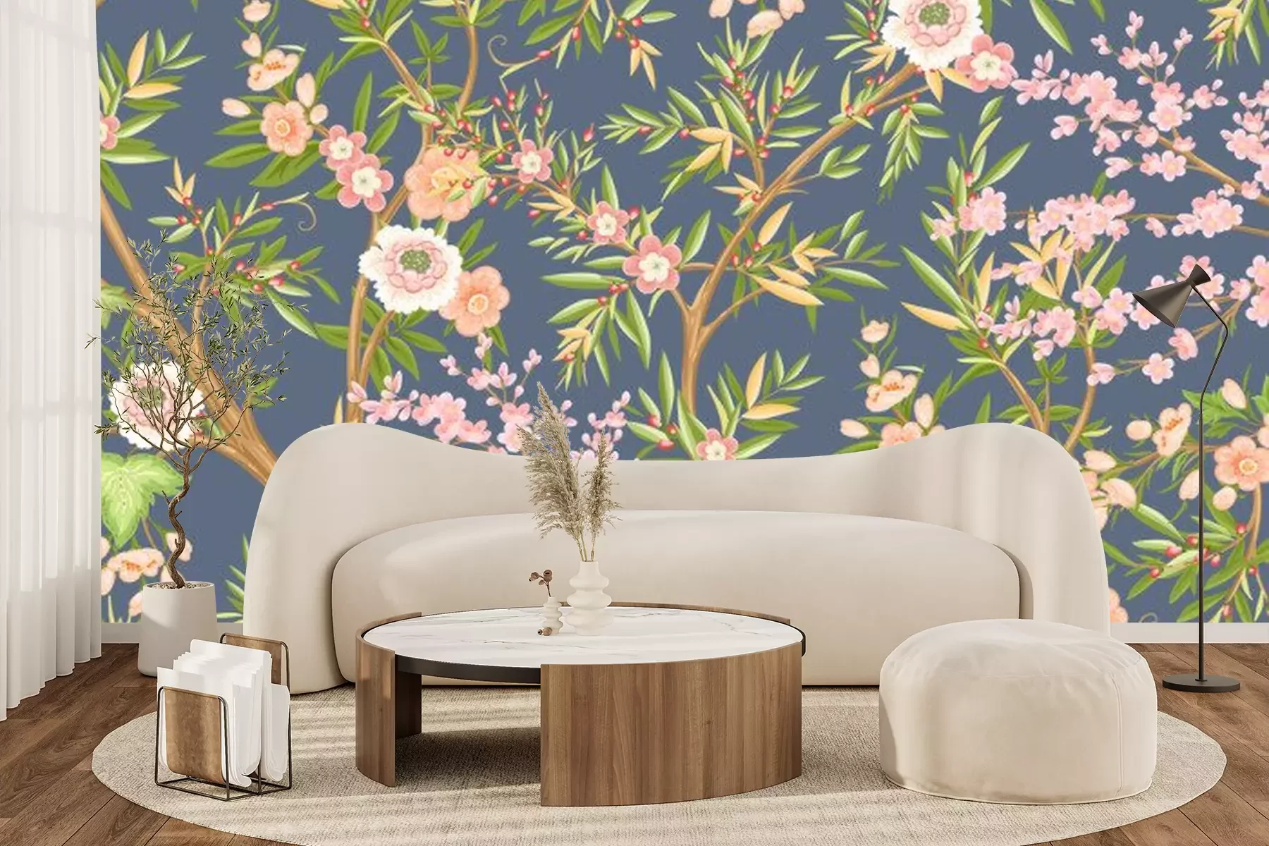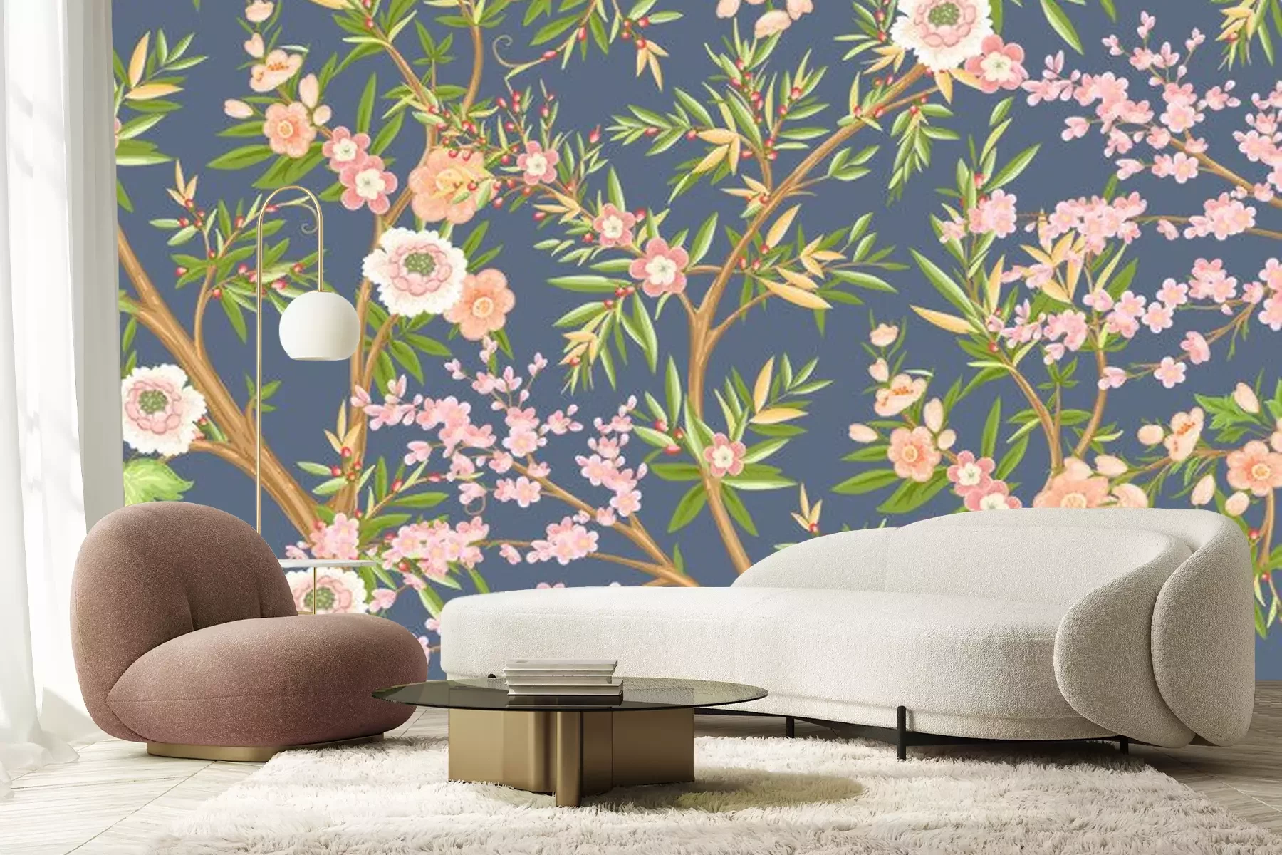 Fototapete Floral seamless pattern in chinoiserie style. Vector illustration.