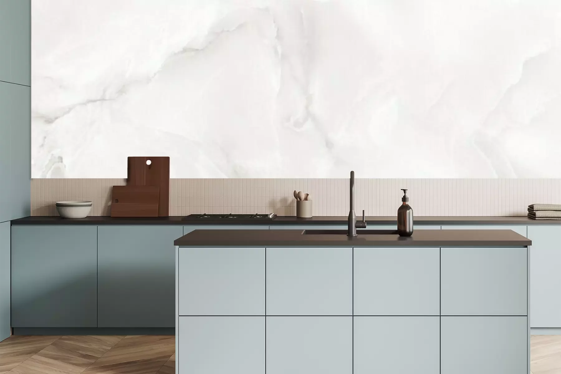 Super schöne Küchentapete, genau nach Maß, passt perfekt.