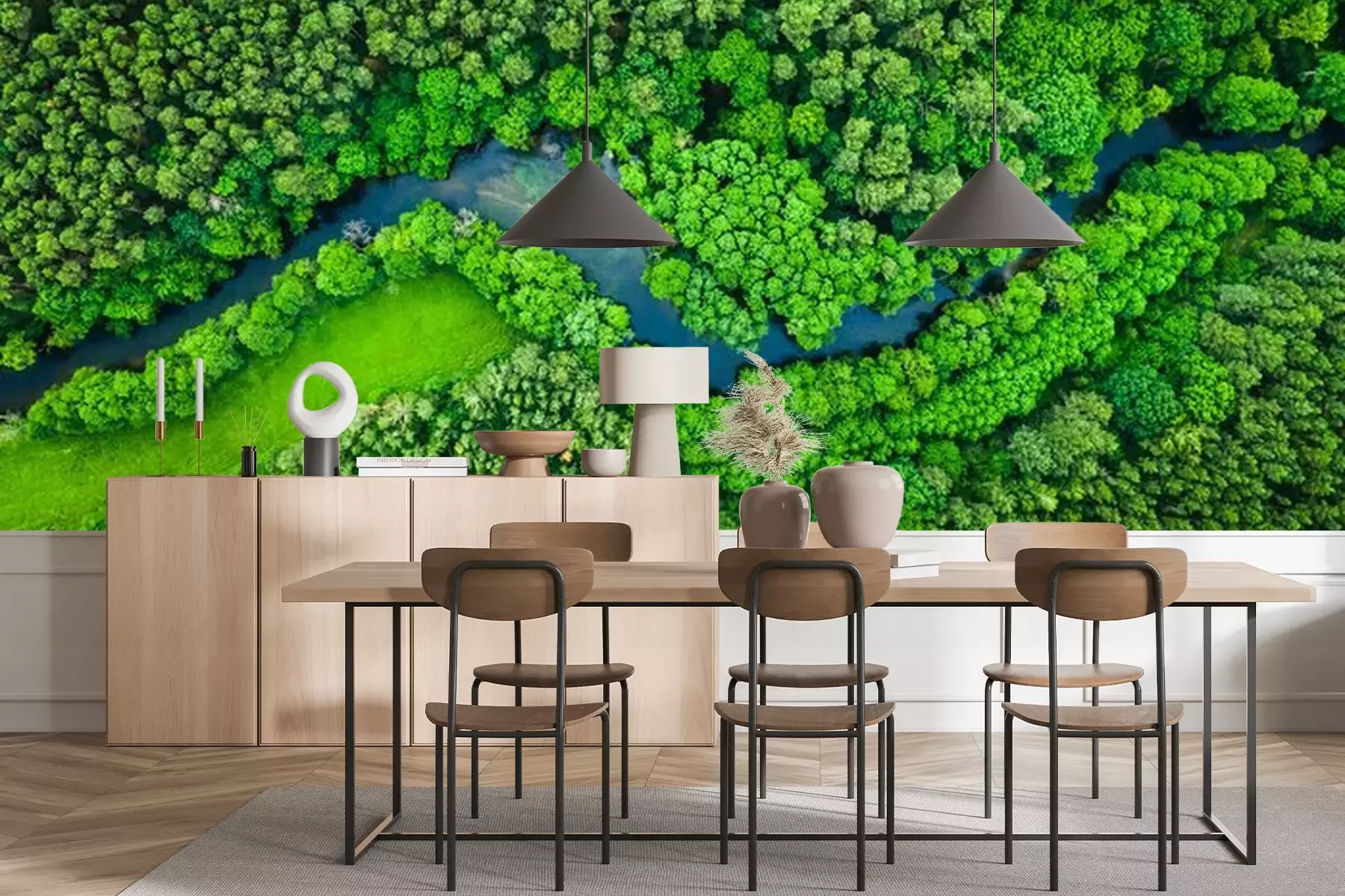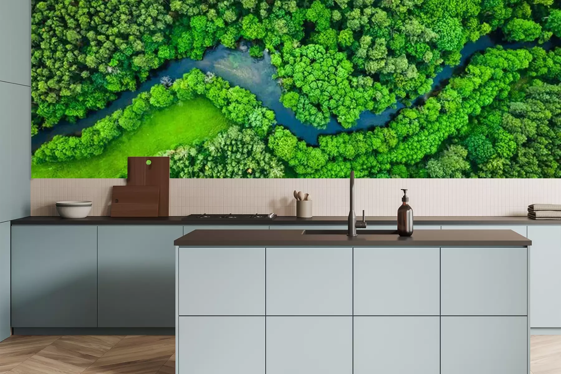 Fototapete Fluss und grüner Wald im Landschaftspark Tuchola