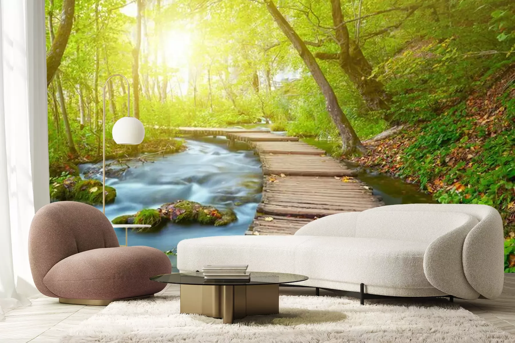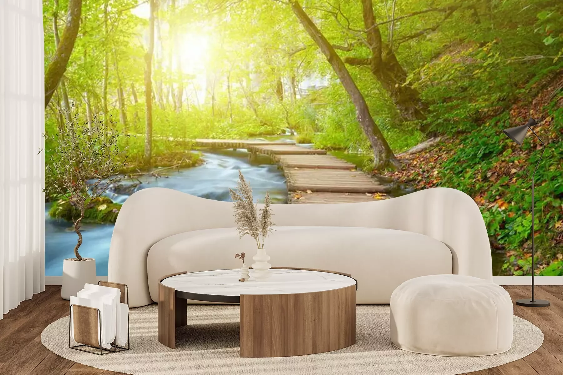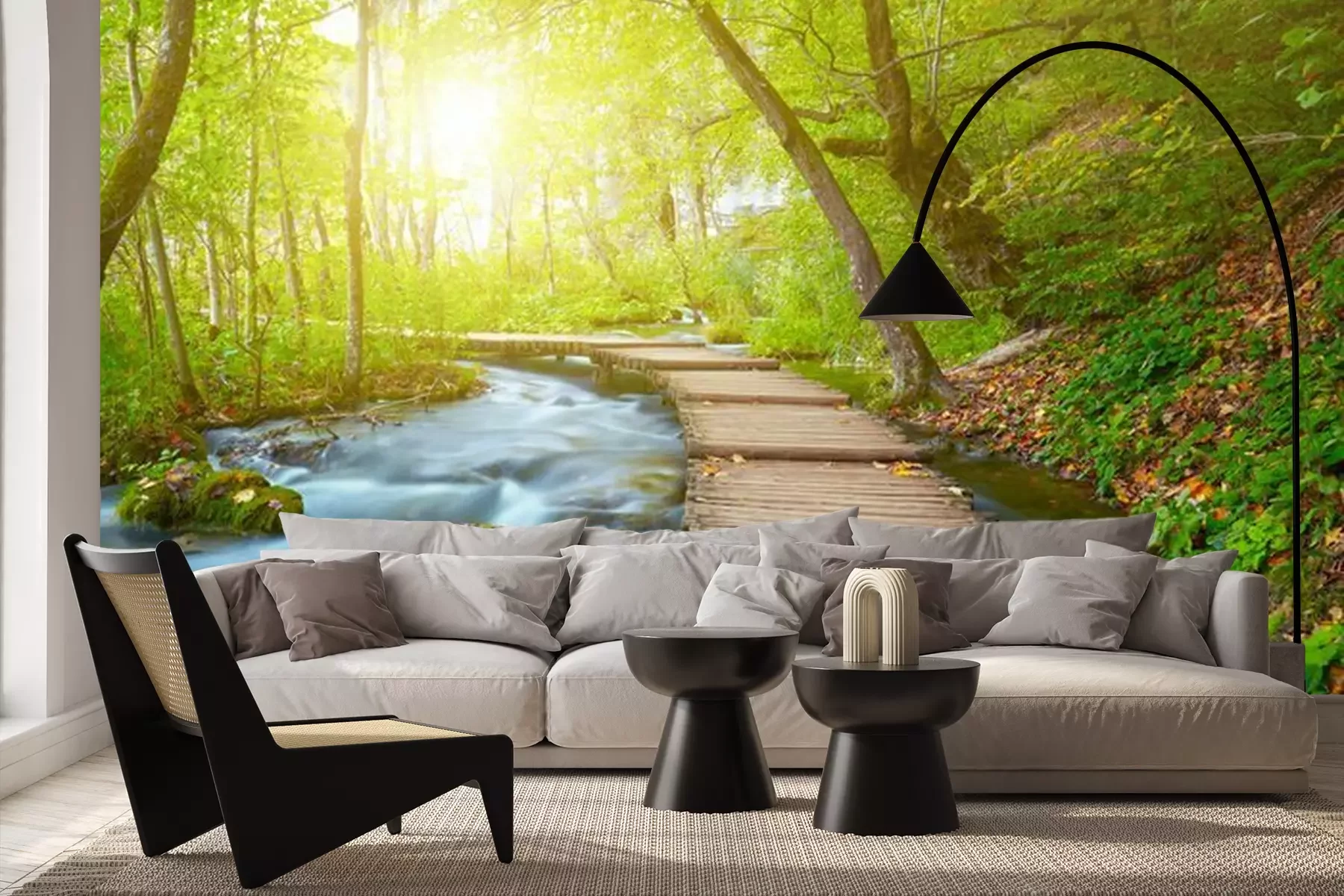 Steg über der Bach im WaldProblemlose Lieferung durch vertrauenswürdige Spediteure