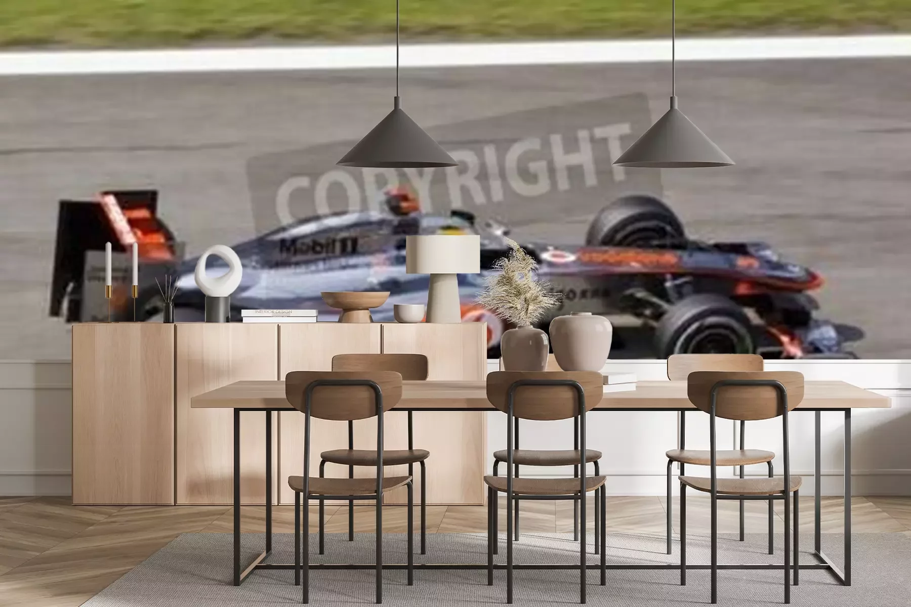 Fototapete Formel 1 Bolid auf der Rennstrecke