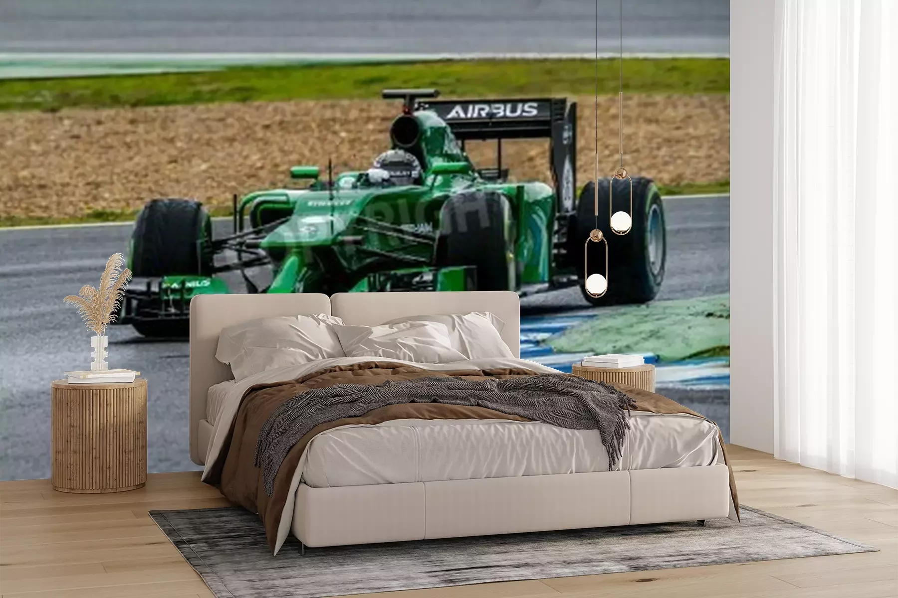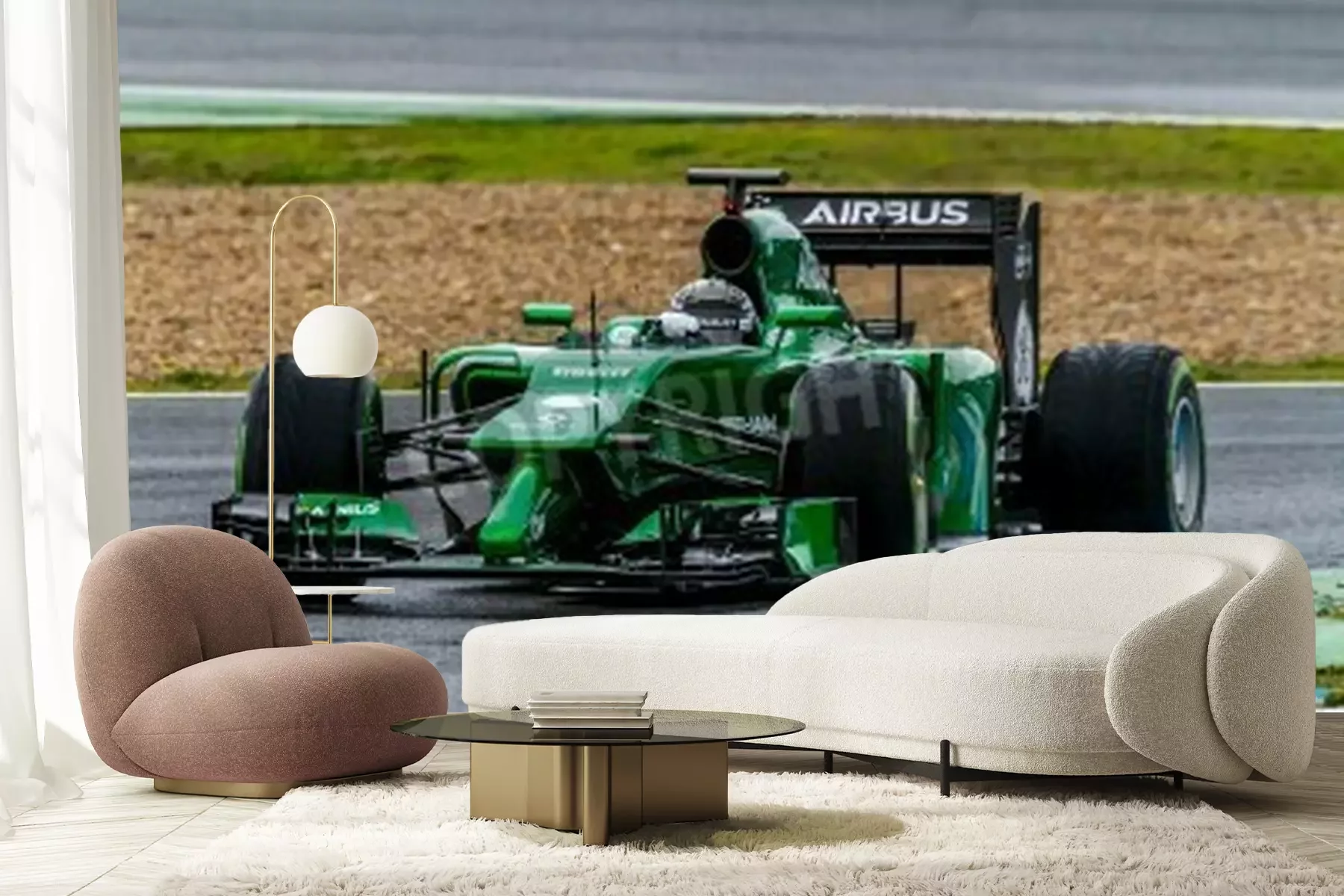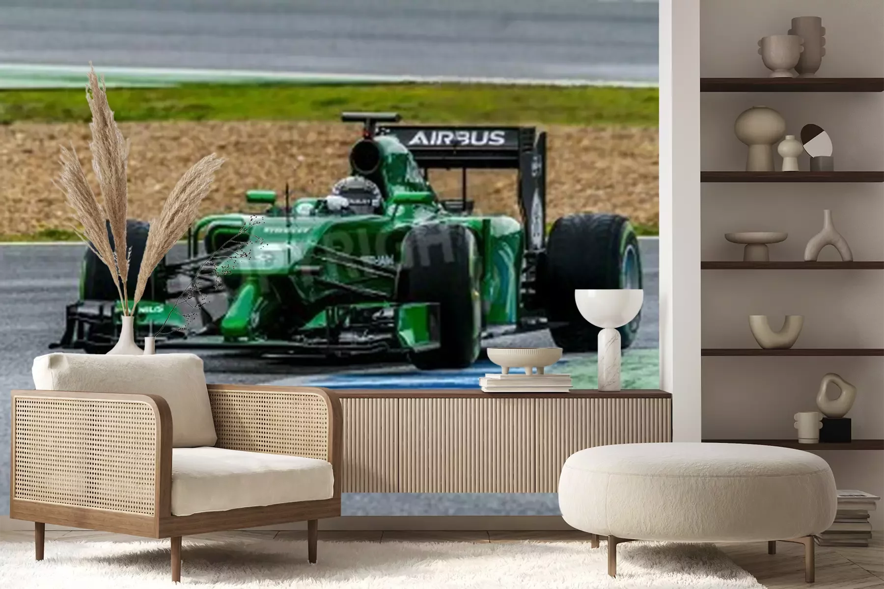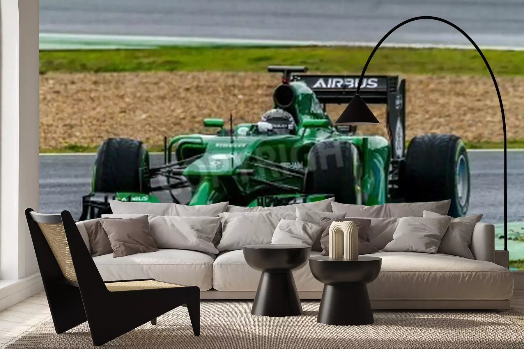 Fototapete Formel 1 grüner Bolid auf der Rennstrecke