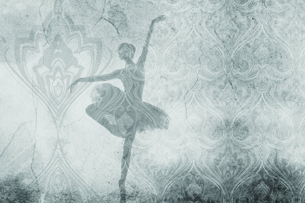 Fototapete: Frau, die Ballett auf einem Betonornament tanzt