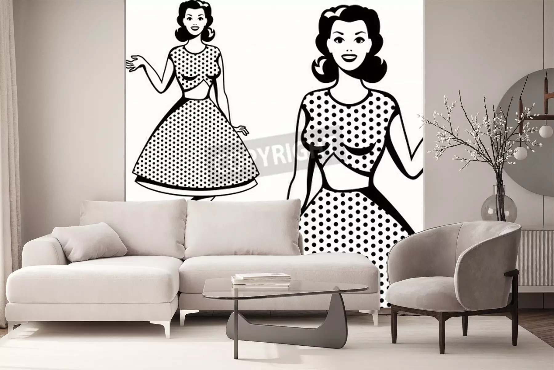 Fototapete Frau in einer gepunkteten Kleidung
