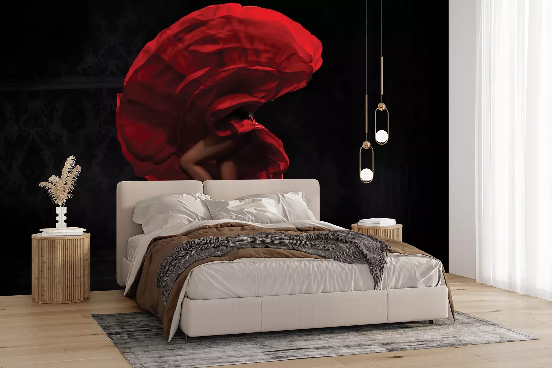 Das Material Premium+ besteht aus einer strukturierten Vinyl-Oberschicht und einem Trägermaterial (Vlies) mit einer Grammatur von 255 g/m², das kleine Unebenheiten der Wand zuverlässig kaschiert. Die feine Sandstruktur verleiht der Oberfläche eine luxuriöse Haptik, während das halbmatte Finish die Tiefe der Farben betont. Das Material ist dampfdurchlässig – so kann diese Fototapete auch in Küchen und Badezimmern eingesetzt werden. Die maximale Breite einer Tapetenbahn beträgt 100 cm. Bei größeren Abmessungen besteht die Fototapete aus mehreren gleich großen Bahnen. Der Kleber wird direkt auf die Wand aufgetragen, und die Fototapete wird auf Stoß angebracht, was für einen ästhetischen Effekt ohne sichtbare Fugen sorgt. Die Oberfläche ist pflegeleicht und kann bei Bedarf sanft mit einem feuchten Tuch abgewischt werden.