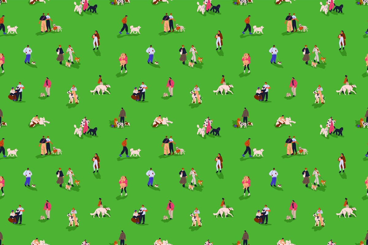 Fototapete: Frauen und Männer mit Hunden beim Spaziergang