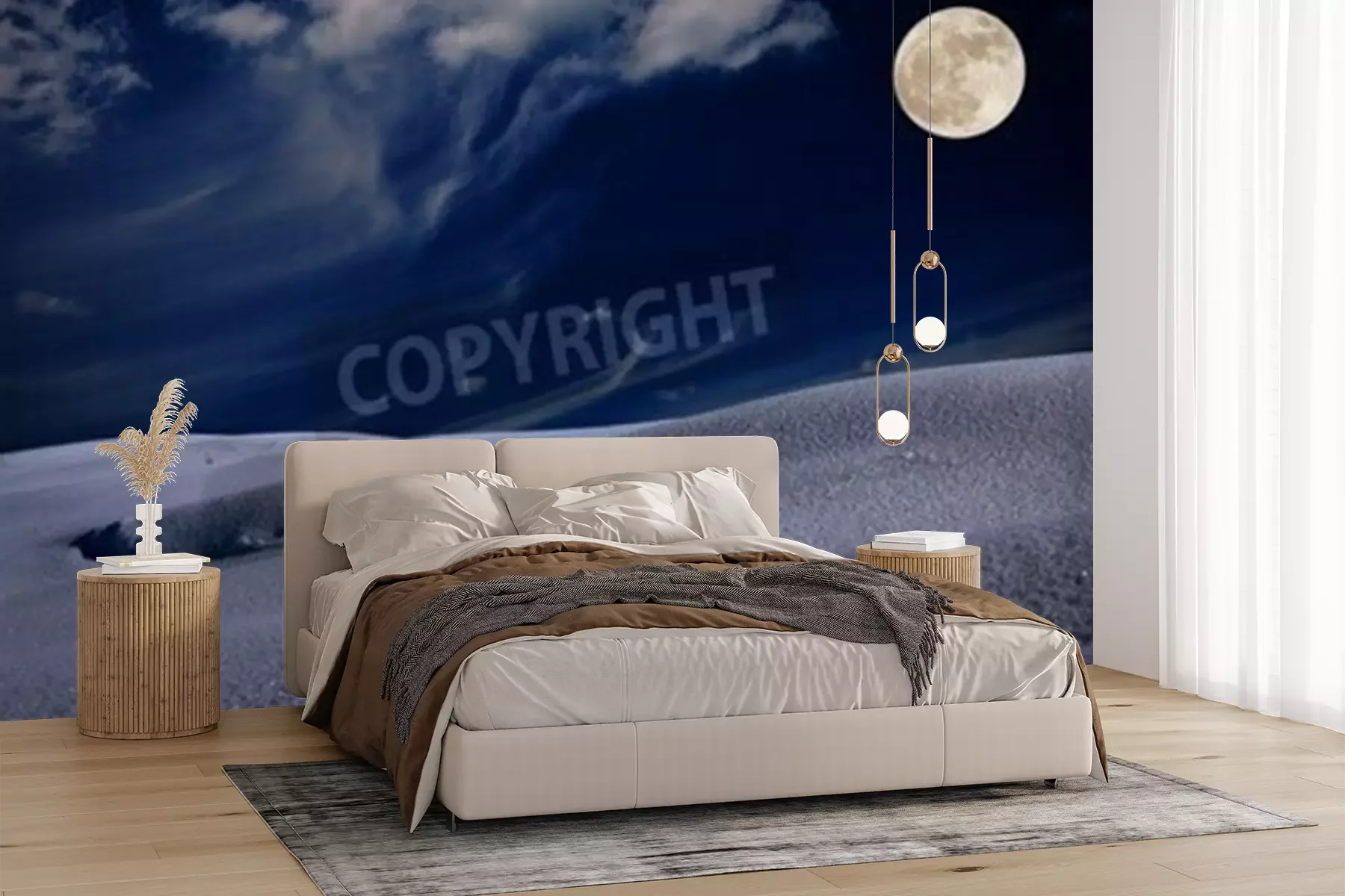 Die Fototapeten werden in Bahnen geliefert. Die Größe und die Anzahl der Bahnen, aus denen die gesamte Fototapete besteht, hängen vom gewählten Material ab. Wenn die Größe die maximale Breite des Materials überschreitet, besteht der Ausdruck aus mehreren gleich großen Bahnen.