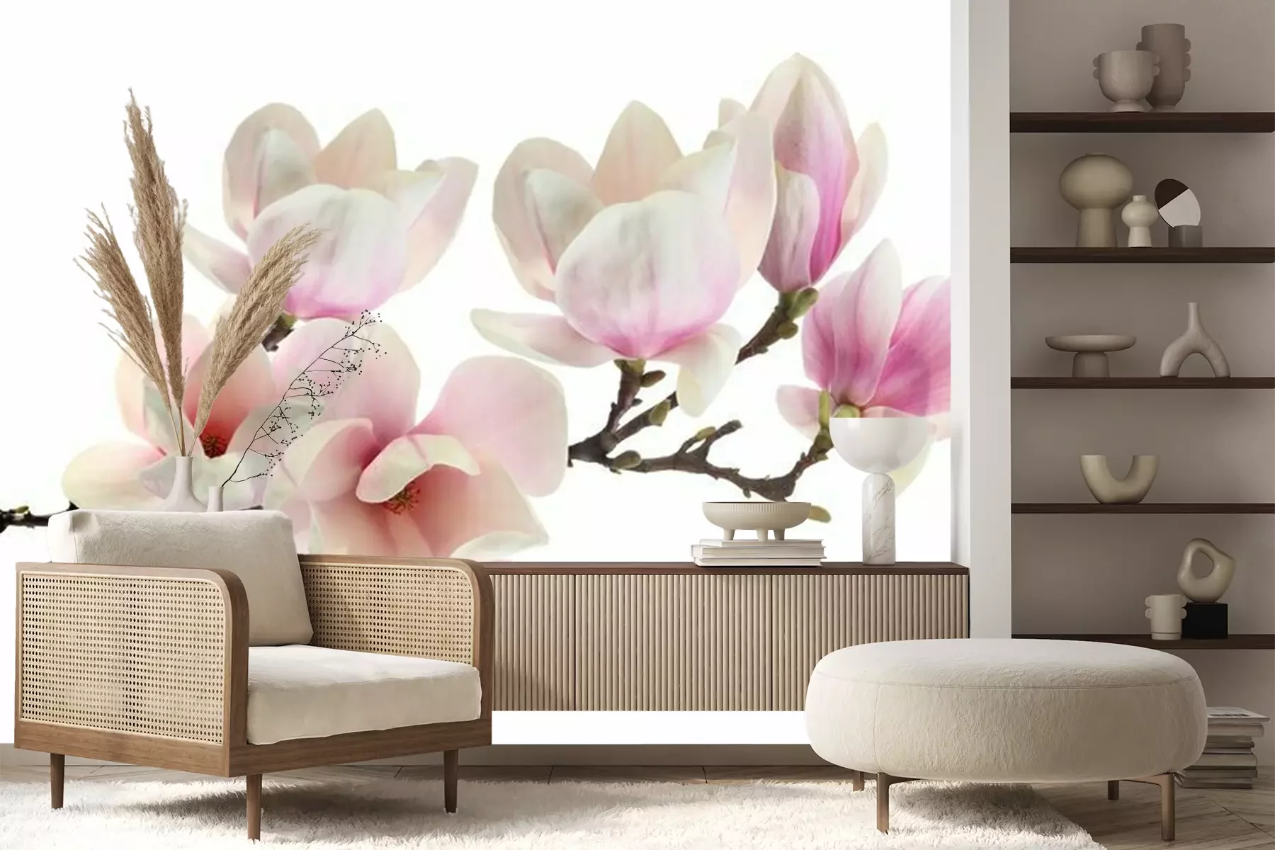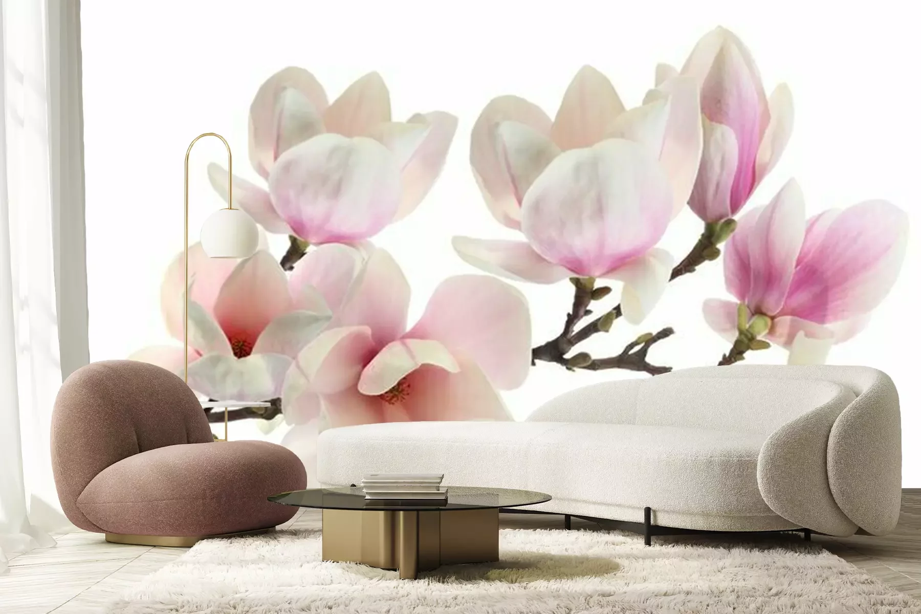 Magnolien in Weiß- und RosatönenFototapete