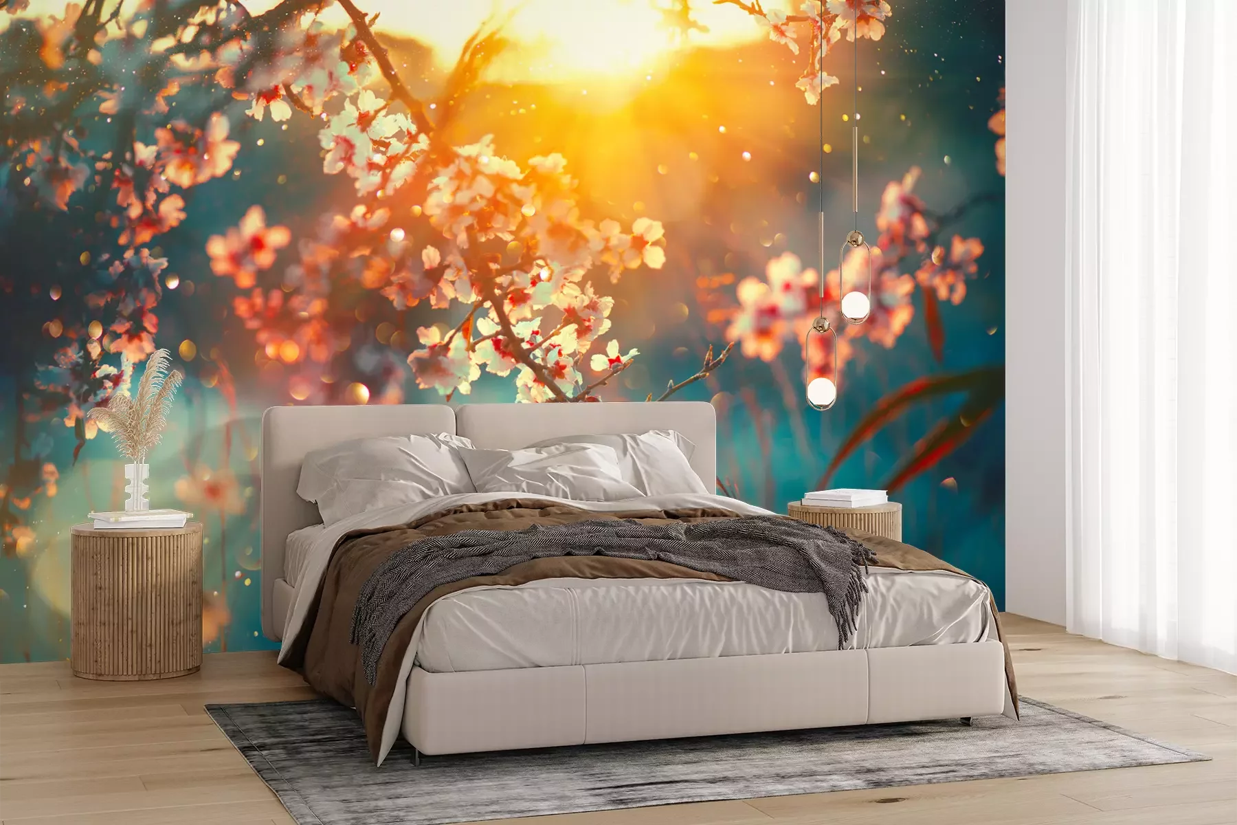 Das Material Premium+ besteht aus einer strukturierten Vinyl-Oberschicht und einem Trägermaterial (Vlies) mit einer Grammatur von 255 g/m², das kleine Unebenheiten der Wand zuverlässig kaschiert. Die feine Sandstruktur verleiht der Oberfläche eine luxuriöse Haptik, während das halbmatte Finish die Tiefe der Farben betont. Das Material ist dampfdurchlässig – so kann diese Fototapete auch in Küchen und Badezimmern eingesetzt werden. Die maximale Breite einer Tapetenbahn beträgt 100 cm. Bei größeren Abmessungen besteht die Fototapete aus mehreren gleich großen Bahnen. Der Kleber wird direkt auf die Wand aufgetragen, und die Fototapete wird auf Stoß angebracht, was für einen ästhetischen Effekt ohne sichtbare Fugen sorgt. Die Oberfläche ist pflegeleicht und kann bei Bedarf sanft mit einem feuchten Tuch abgewischt werden.