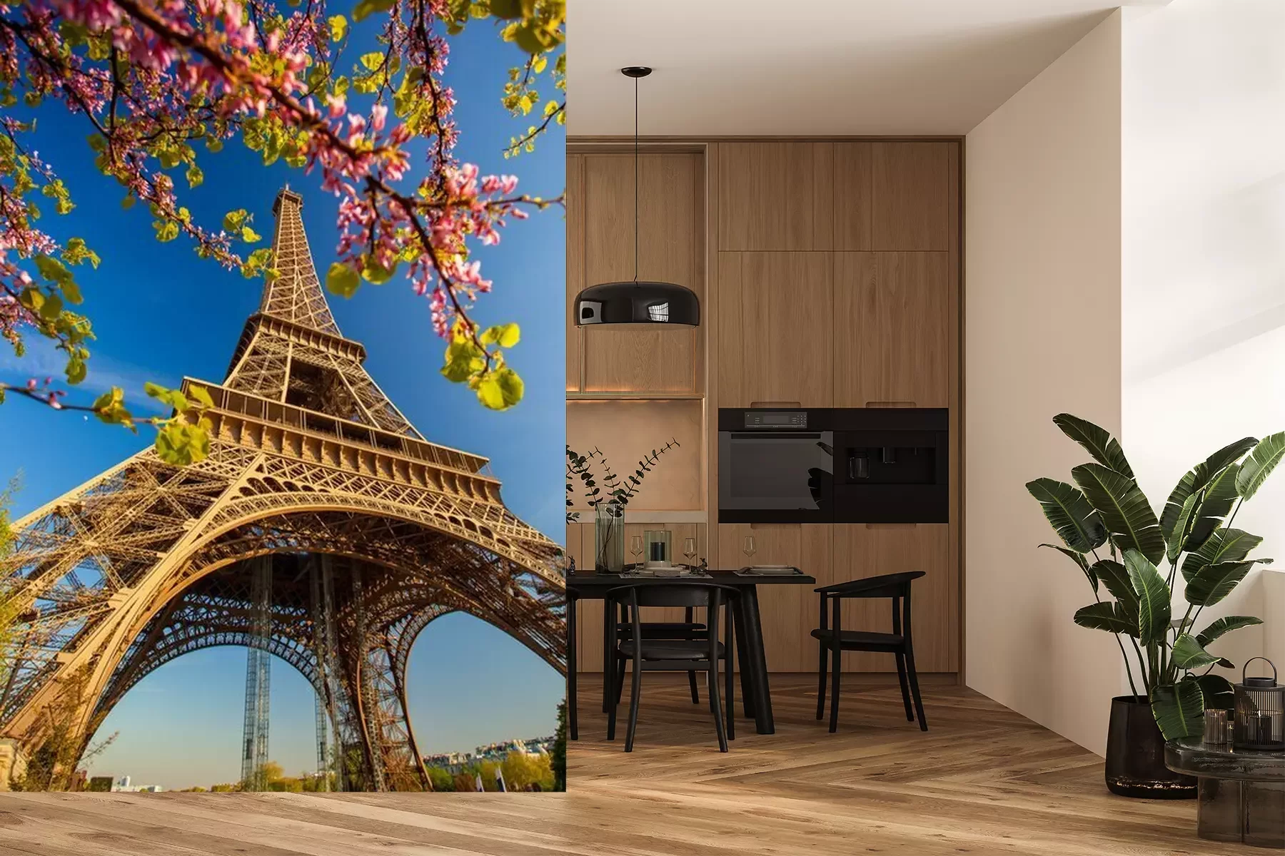 Das Material Premium+ besteht aus einer strukturierten Vinyl-Oberschicht und einem Trägermaterial (Vlies) mit einer Grammatur von 255 g/m², das kleine Unebenheiten der Wand zuverlässig kaschiert. Die feine Sandstruktur verleiht der Oberfläche eine luxuriöse Haptik, während das halbmatte Finish die Tiefe der Farben betont. Das Material ist dampfdurchlässig – so kann diese Fototapete auch in Küchen und Badezimmern eingesetzt werden. Die maximale Breite einer Tapetenbahn beträgt 100 cm. Bei größeren Abmessungen besteht die Fototapete aus mehreren gleich großen Bahnen. Der Kleber wird direkt auf die Wand aufgetragen, und die Fototapete wird auf Stoß angebracht, was für einen ästhetischen Effekt ohne sichtbare Fugen sorgt. Die Oberfläche ist pflegeleicht und kann bei Bedarf sanft mit einem feuchten Tuch abgewischt werden.