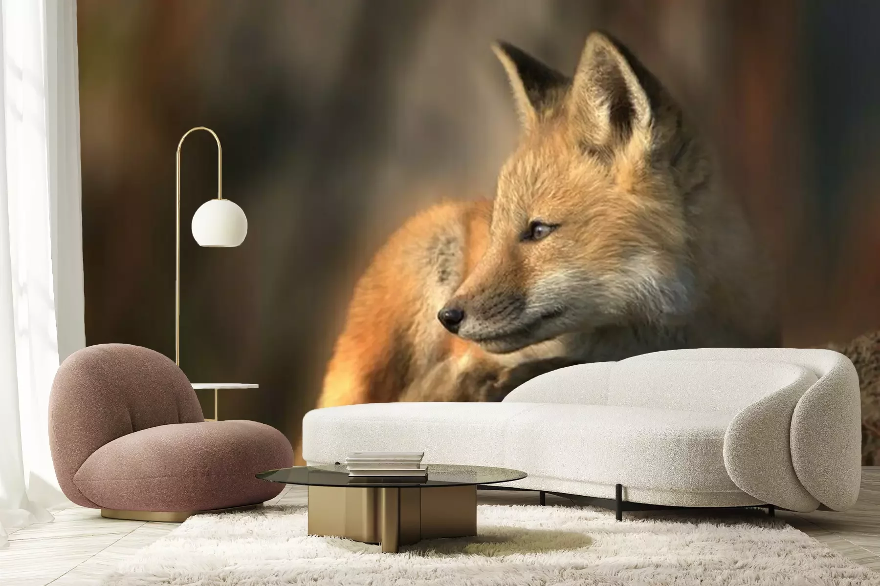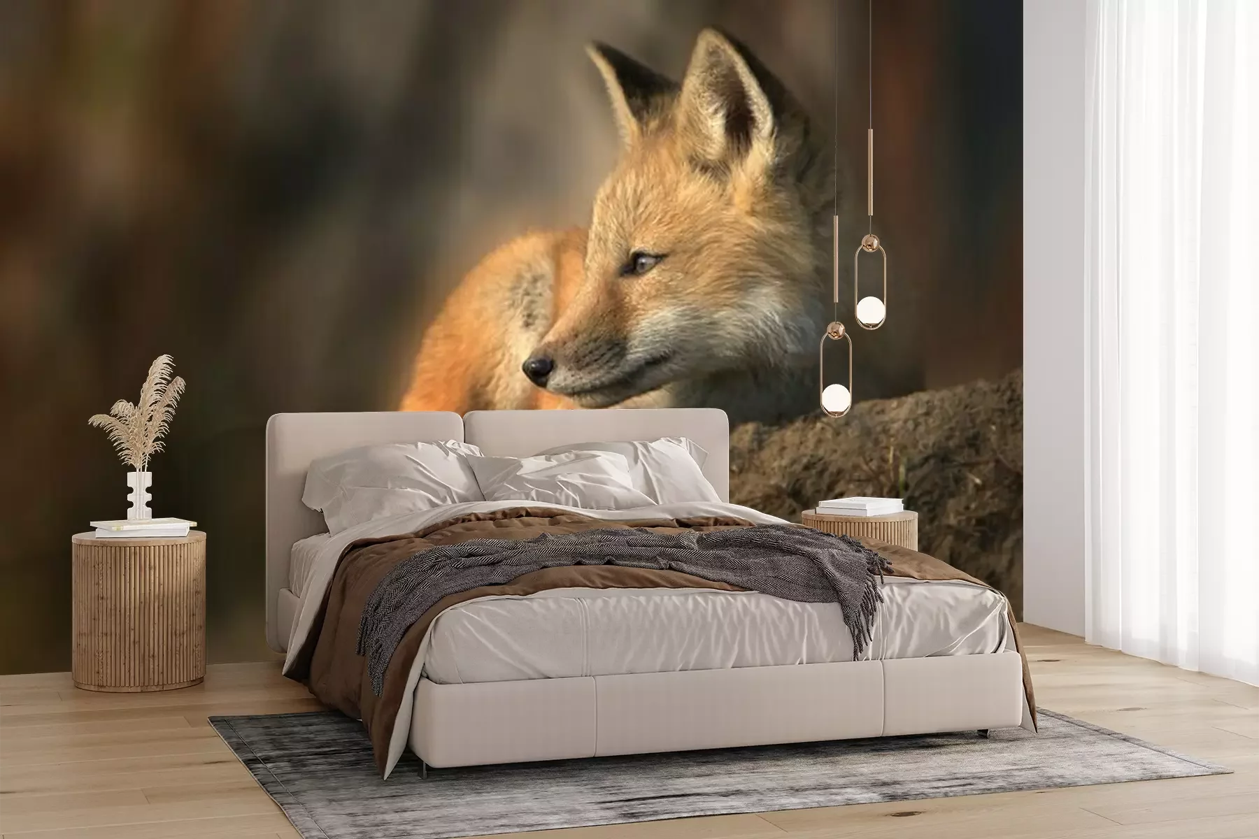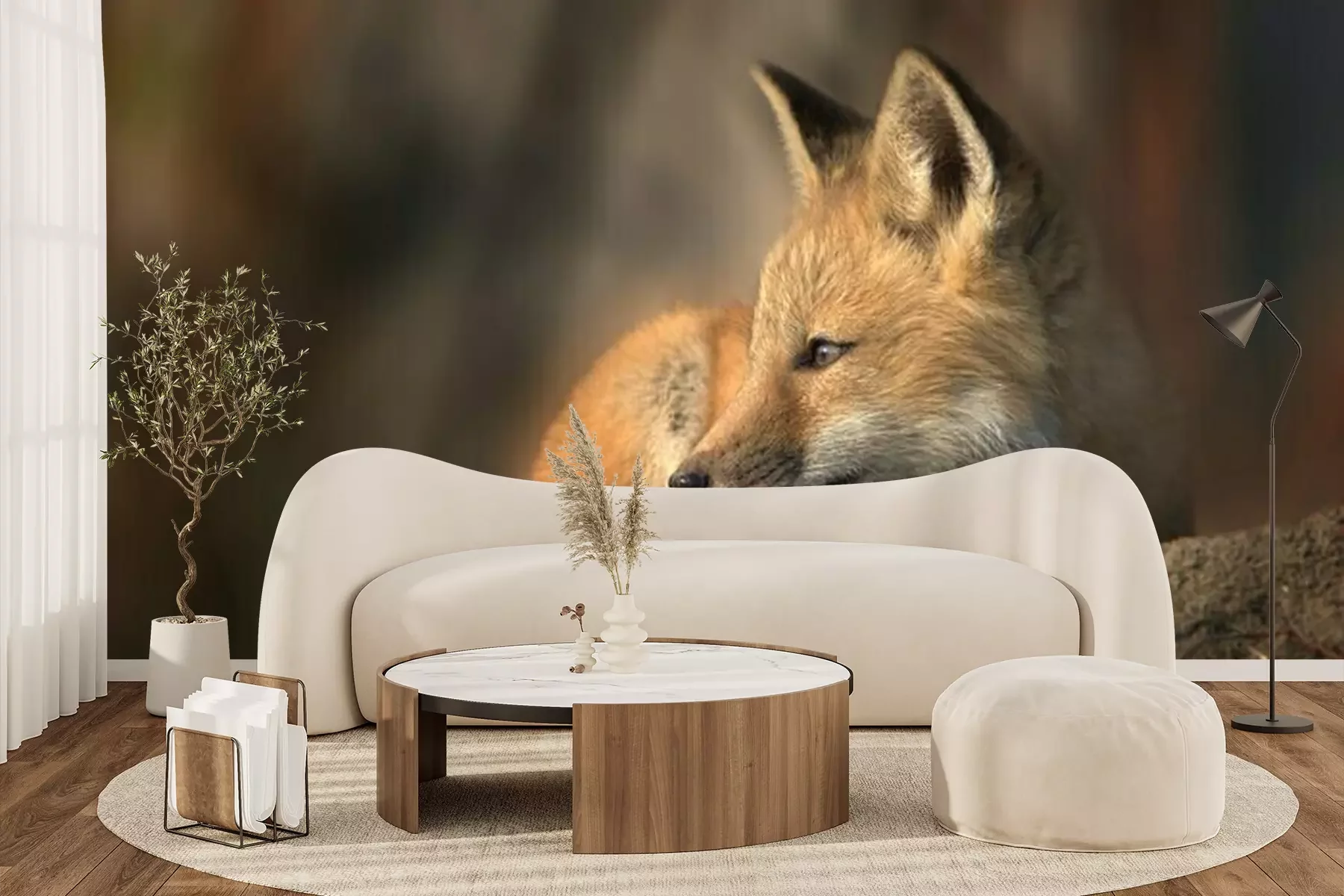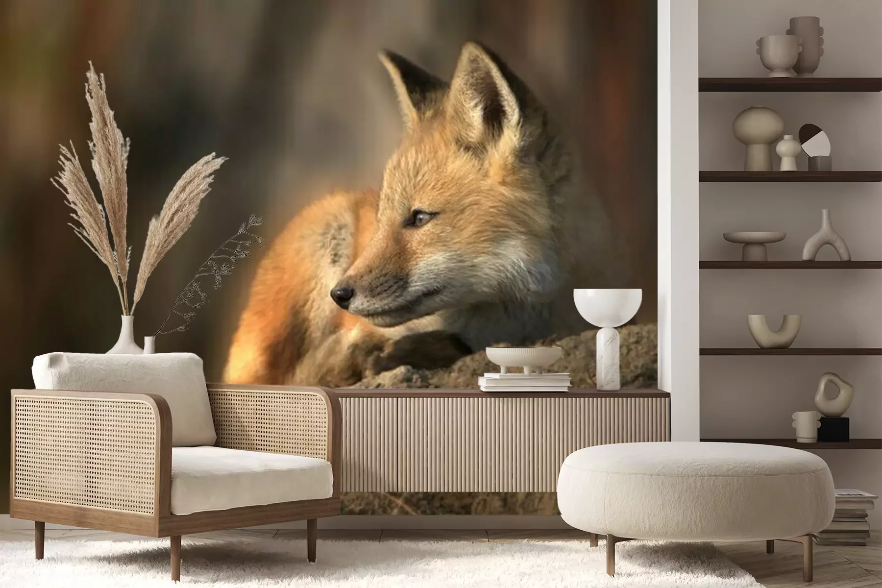 Fototapete Fuchs auf einem Stein in der Sonne
