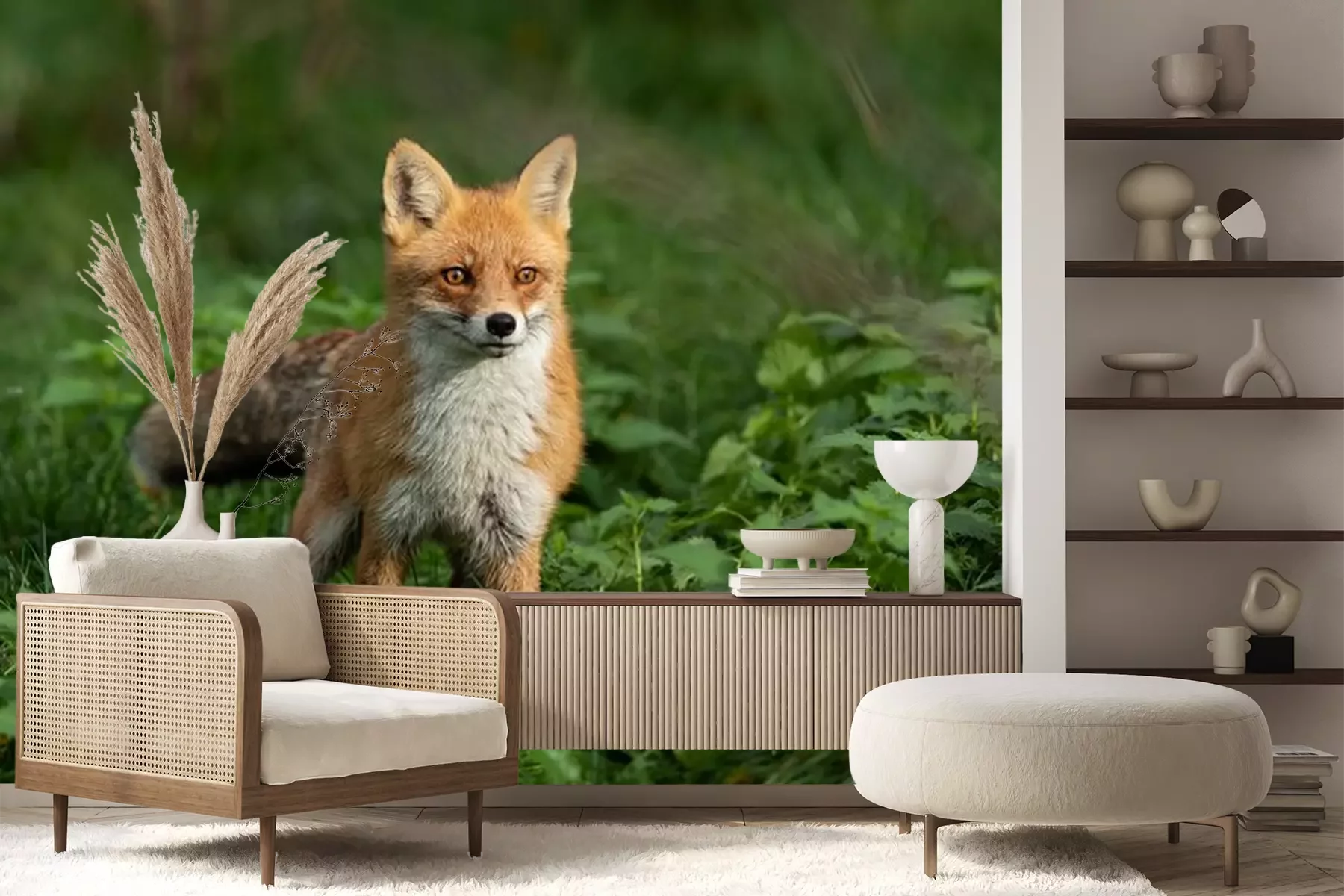 Fototapete Fuchs im grünen Laub