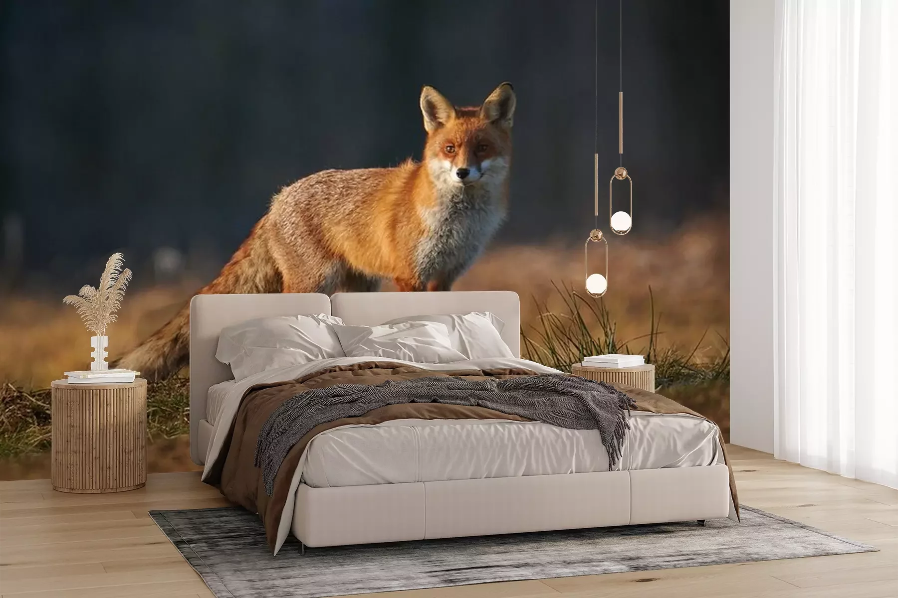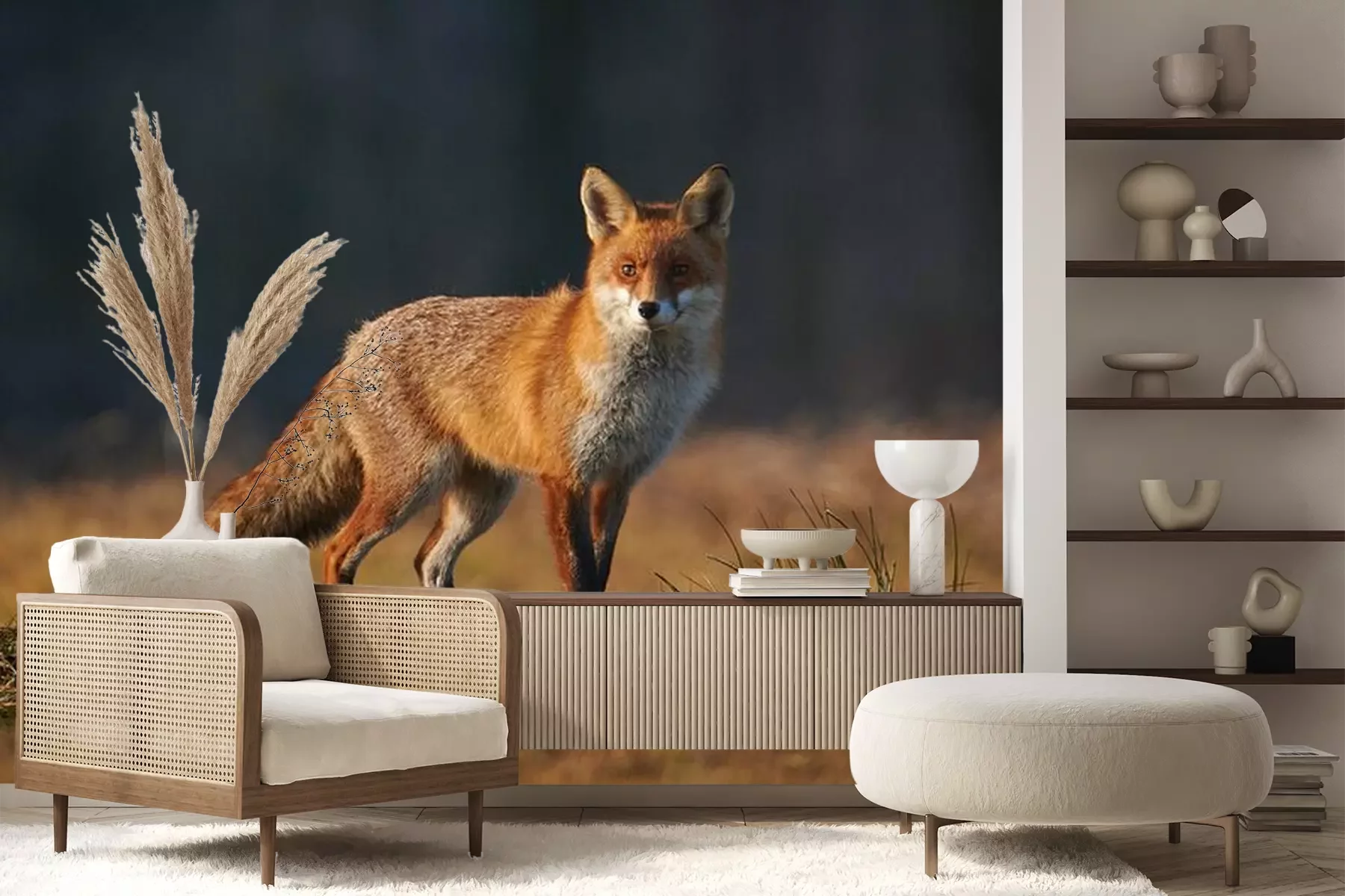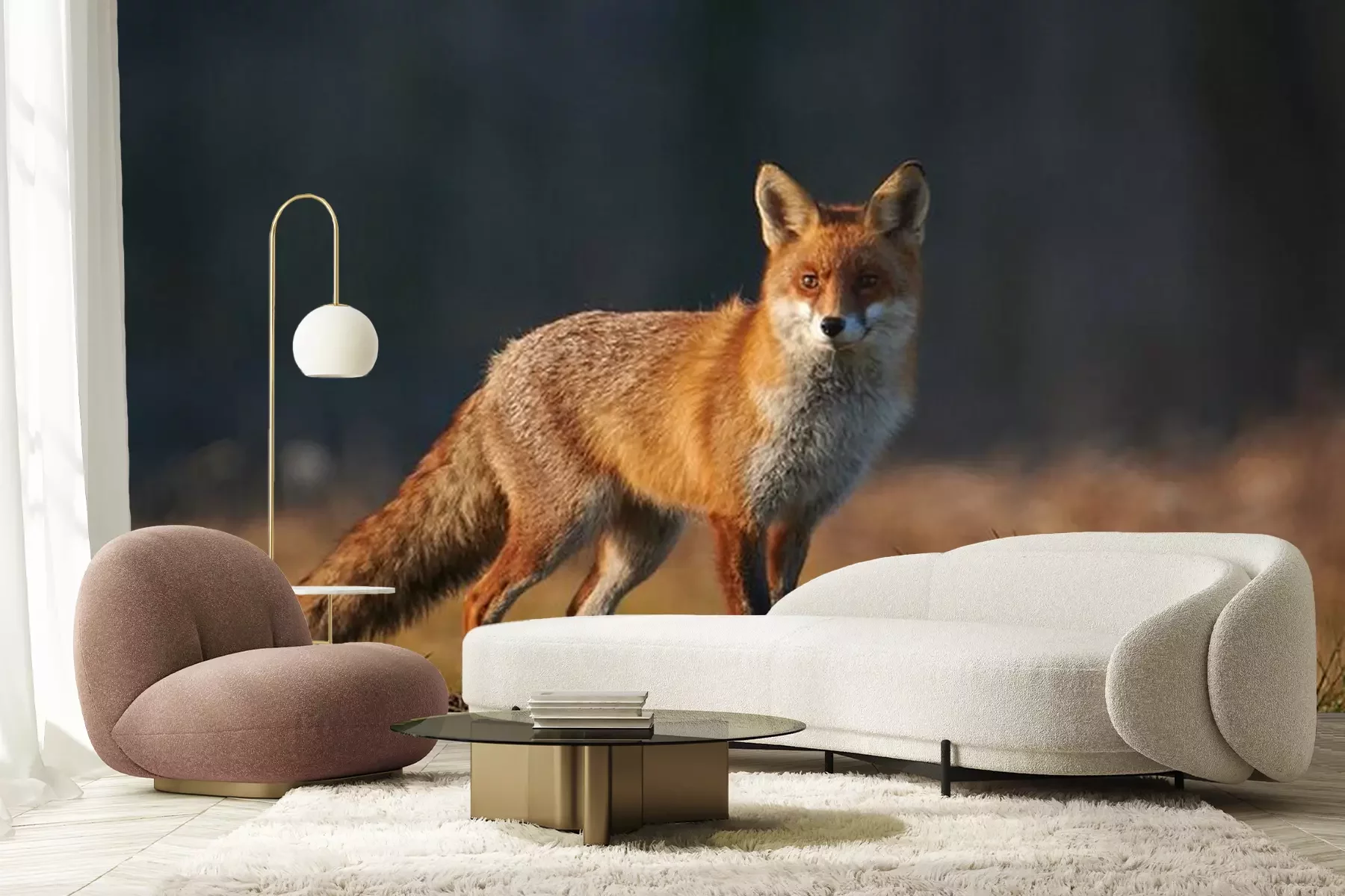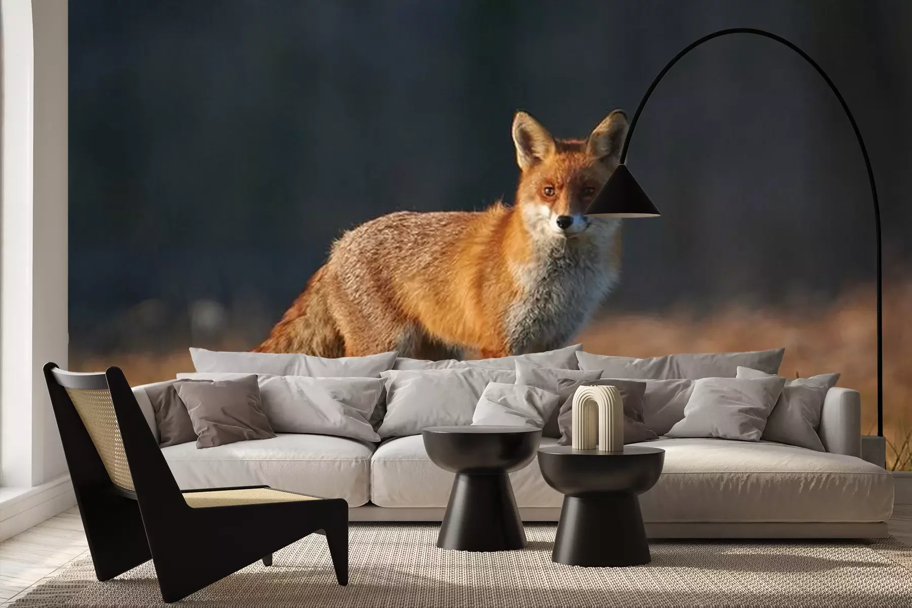 Fototapete Fuchsfigur auf verschwommenem Hintergrund