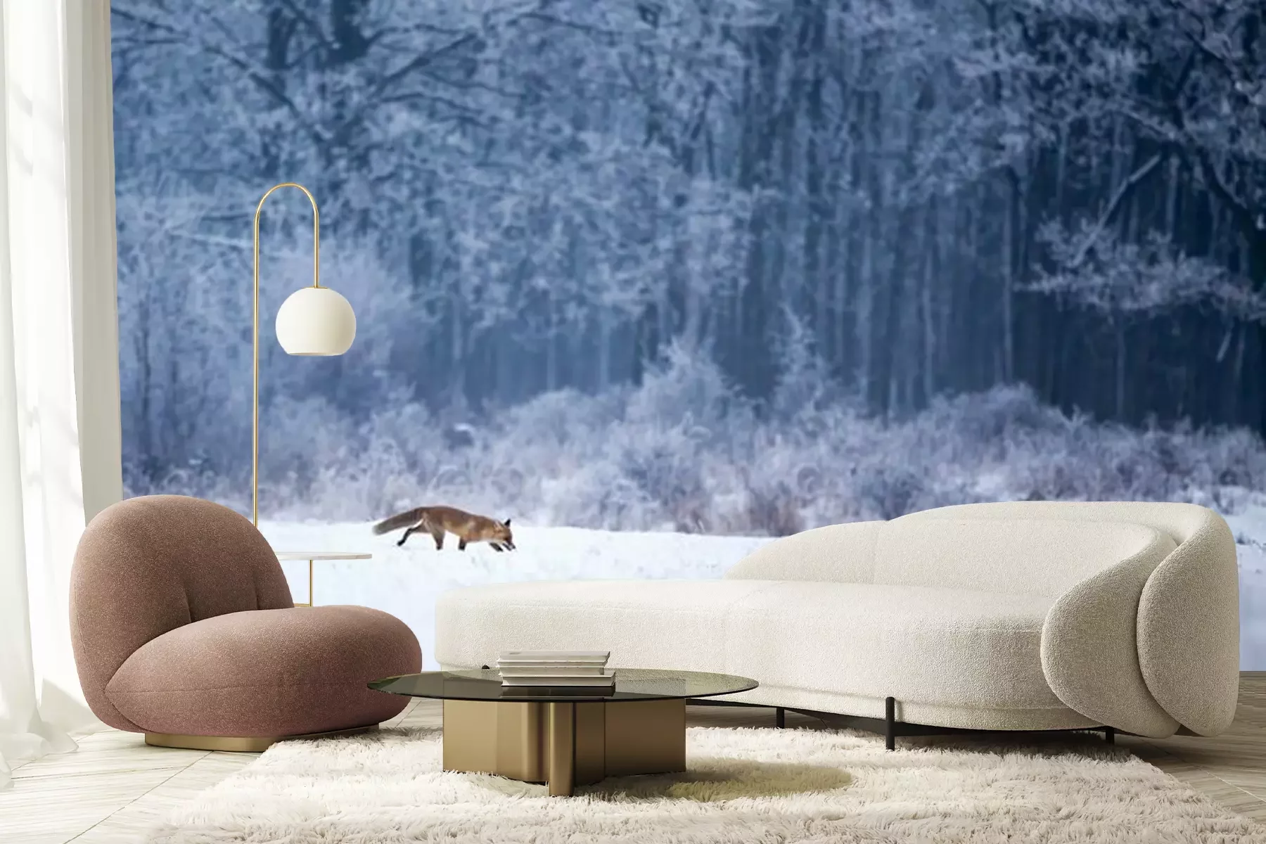 Fototapete Fuchsfigur in einem verschneiten Wald