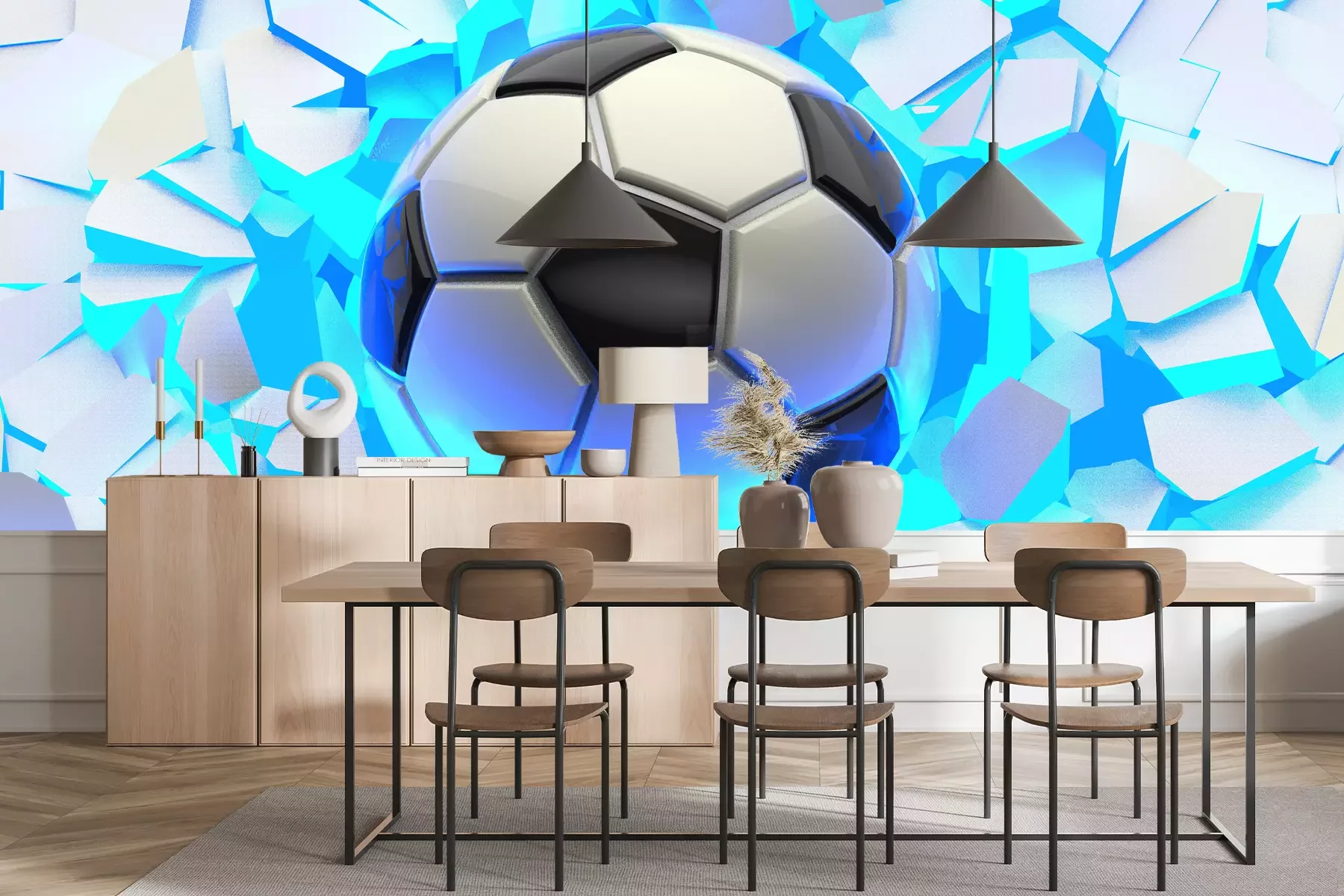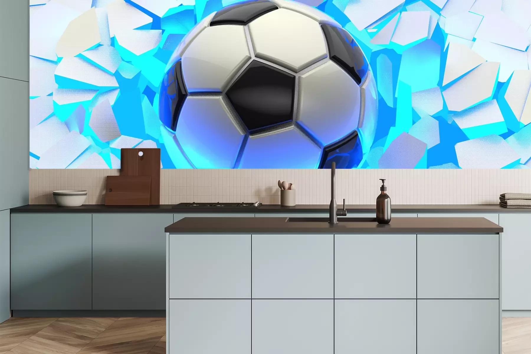 *Der Rabatt gilt nicht für Klebstoffe, Zubehör und Geschenkkarten.Die hier präsentierte Fototapete für Jungenzimmer mit Fußballmotiv ist eine hervorragende Lösung, wenn sich dein Kind für Sport interessiert. So wird die Wanddekoration nicht nur zur Ausschmückung im Raum, sondern auch zu einer Möglichkeit, die Leidenschaft des Kindes zu betonen. Besonders auffällig ist der dreidimensionale Charakter dieser Fototapete. Fußball 3D, der durch eine gebrochene Wand in den Raum zu fliegen scheint, ist ein sehr auffälliges Dekorationselement, das den Raum optisch vergrößert. Ein solches Wandmotiv lässt das Zimmer visuell in einen zusätzlichen Raum übergehen, was die Wahrnehmung der Raumgröße verändert. Ein wichtiger Aspekt sind die Farben dieser Fototapete. Fußball ist zwar im traditionellen Duo Schwarz-Weiß gehalten, aber was sofort ins Auge fällt, ist der neonblaue Schein, der den Ball umgibt. Genau dieses Element macht diese Fototapete für Jungenzimmer so ausdrucksstark. Das Muster erweckt den Eindruck, als würde es leuchten, was das Kind mit Sicherheit anspricht, da das Zimmer dadurch einen einzigartigen Look erhält. Dank der Möglichkeit, die Größe unserer Fototapete an die Wand anzupassen, die du dekorieren möchtest, kannst du problemlos sowohl ein kleines als auch ein geräumiges Kinderzimmer gestalten. Obwohl es sich nicht um eine völlig abstrakte Fototapete handelt, da sie im sportlichen Kontext verankert ist, ist die Komposition überraschend genug, um einen wirklich einzigartigen Effekt im Raum zu erzielen. Das hier dargestellte Motiv sieht sowohl im Zimmer eines kleinen Jungen als auch in einer jugendlichen Einrichtung hervorragend aus. Ein weiterer Vorteil dieser sportlichen, abstrakten Fototapete ist, dass ein fußballbegeistertes Kind nicht so schnell aus dieser Dekoration herauswächst. Ein idealer Platz für ein solches Motiv ist eine Wand in der Nähe der Spielecke oder des Schreibtischs. Einen großartigen visuellen Effekt erzielst du, wenn sich im Zimmer weitere blaue Elemente befinden. Diese passen perfekt zum neonblauen Schein der Fototapete. Fußball auf diesem Muster fügt sich dadurch noch besser in dein Raumkonzept ein.